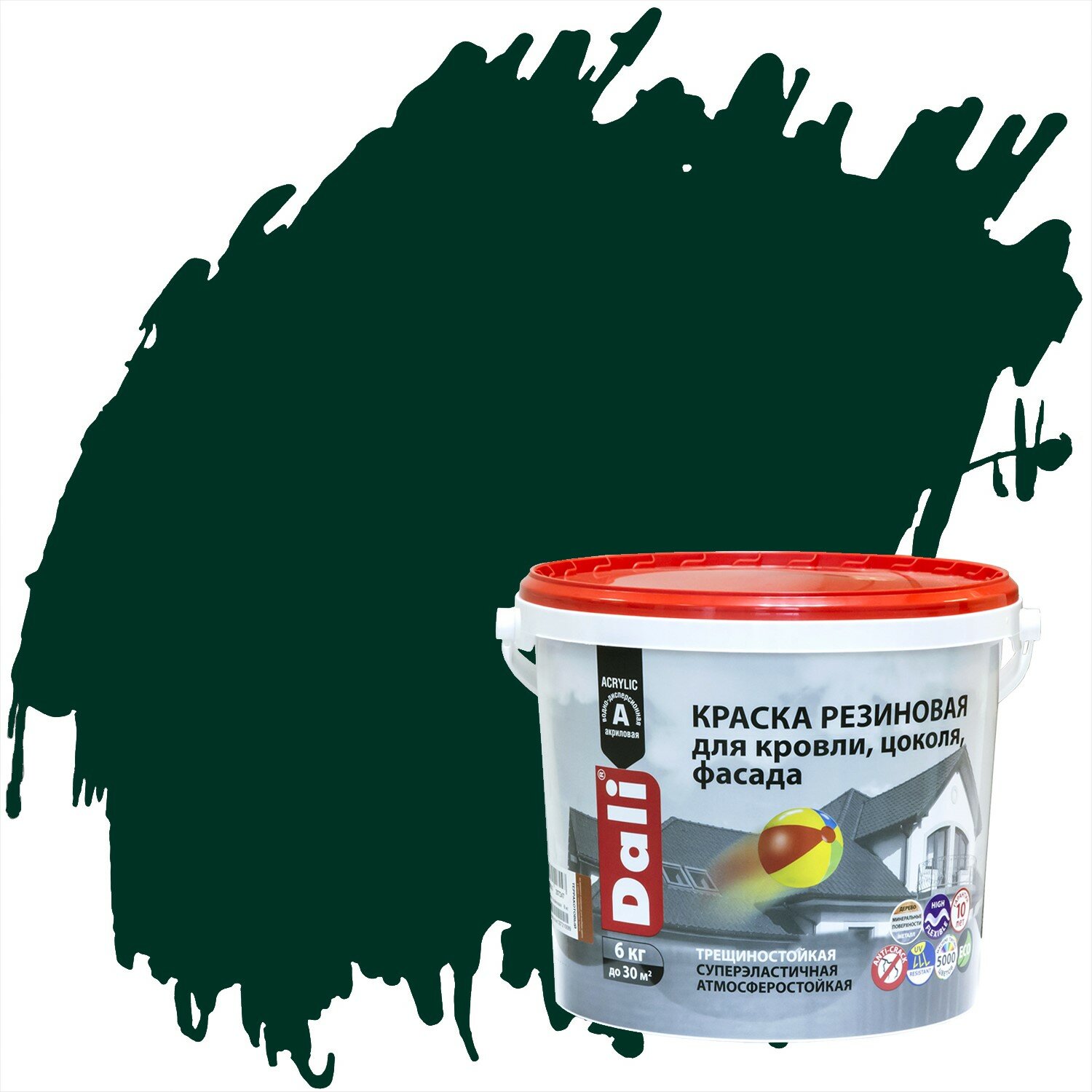 DALI краска для кровли, цоколя, фасада, акриловая, резиновая, трещиностойкая, зеленый мох (6 кг)