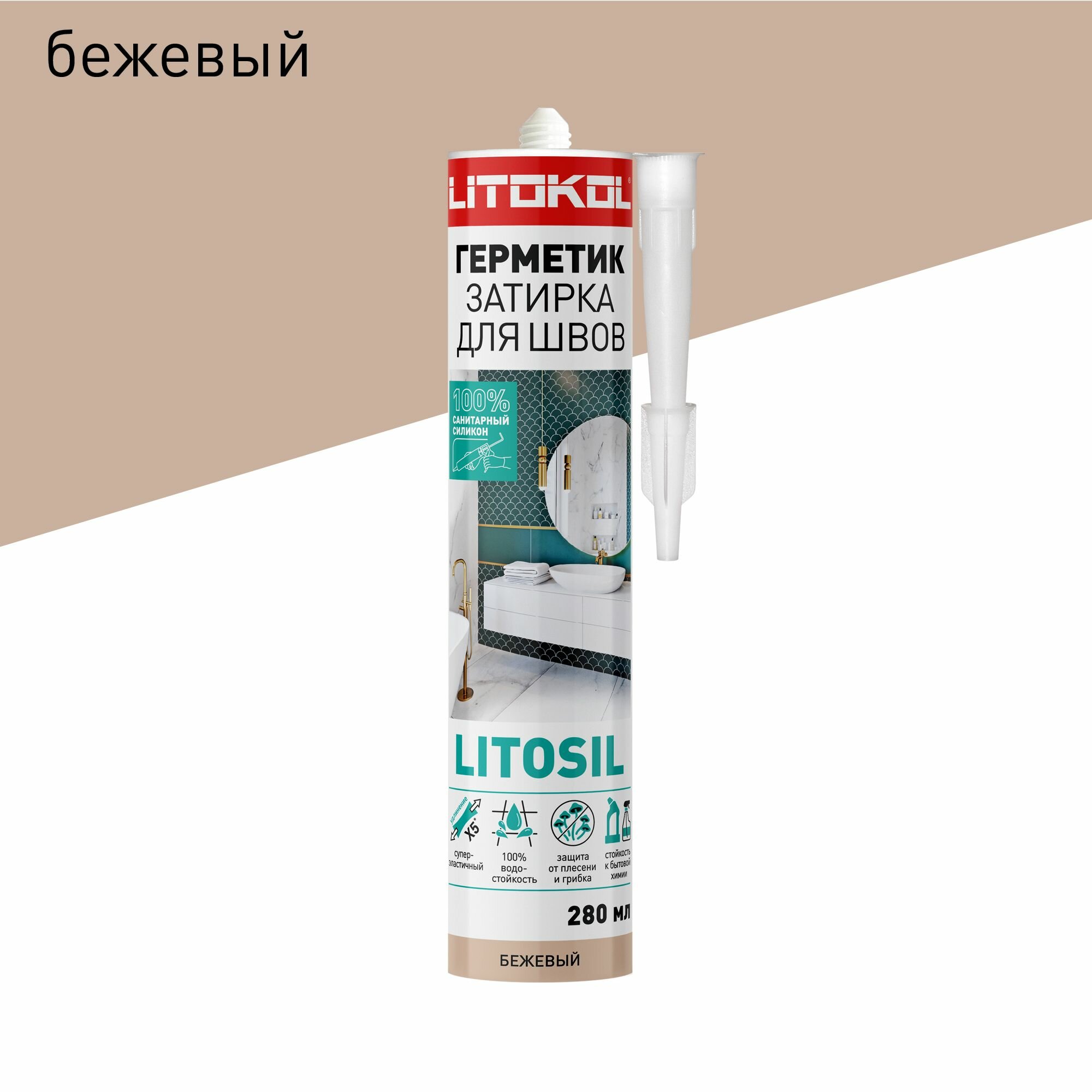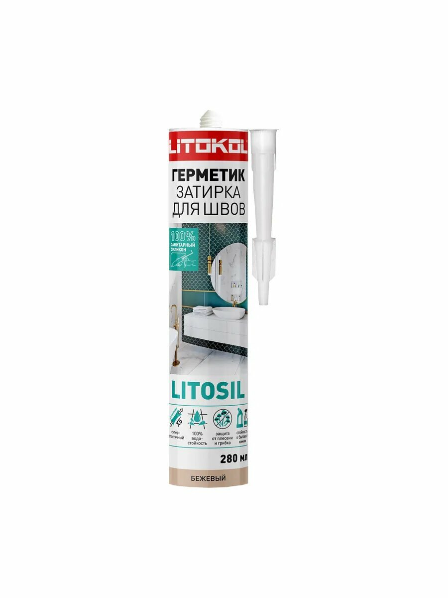 Купить Герметик-затирка санитарный силиконовый LITOKOL LITOSIL Бежевый 280 мл