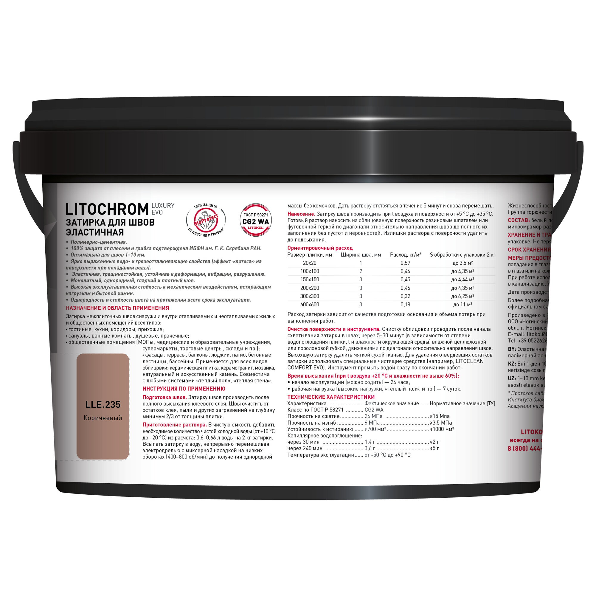 Купить Затирка цементная LITOKOL LITOCHROM LUXURY EVO LLE 235, цвет коричневый, 2 кг