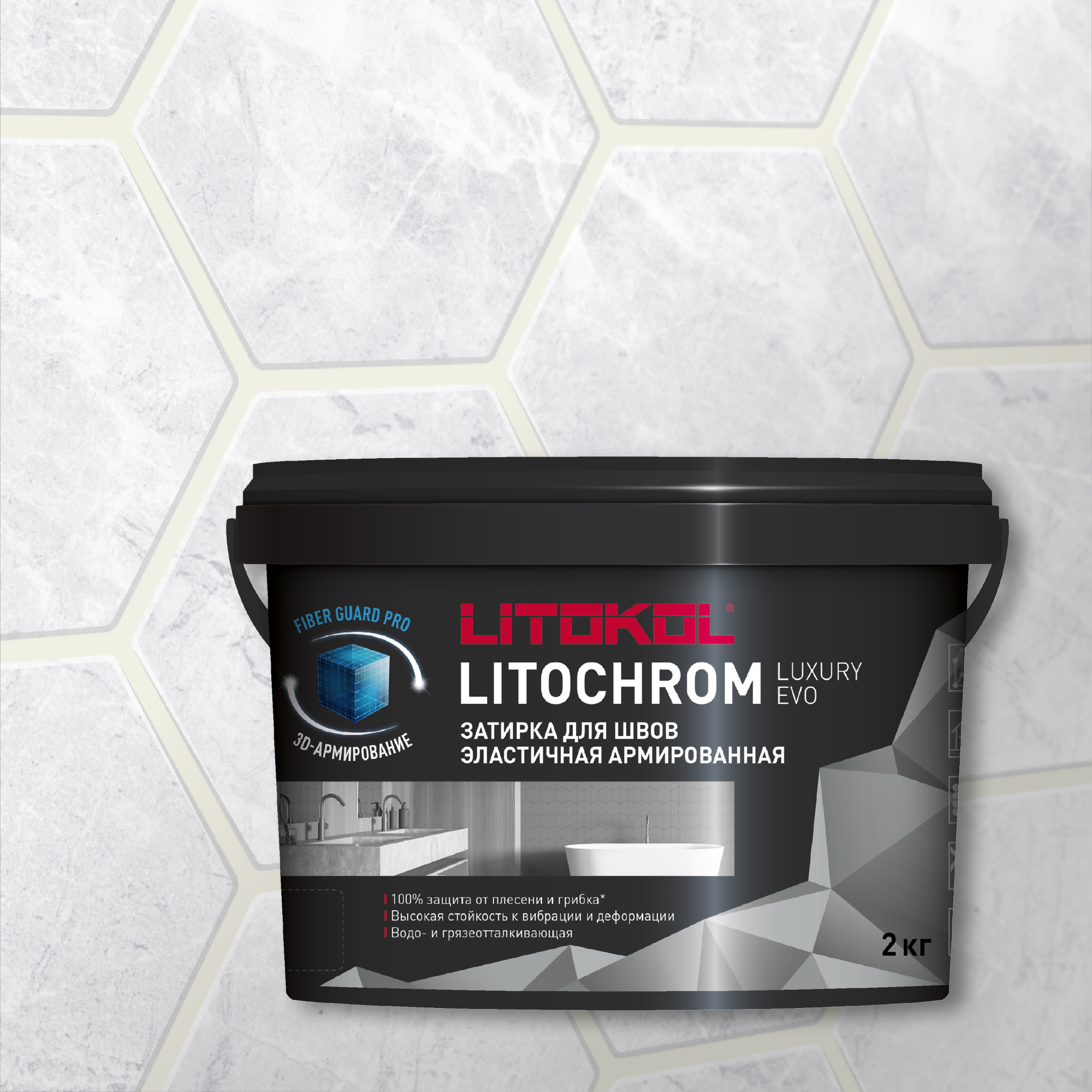 Затирка для плитки, Цементно-полимерная LITOCHROM LUXURY EVO LLE.100, Пепельно-белый, 2 кг