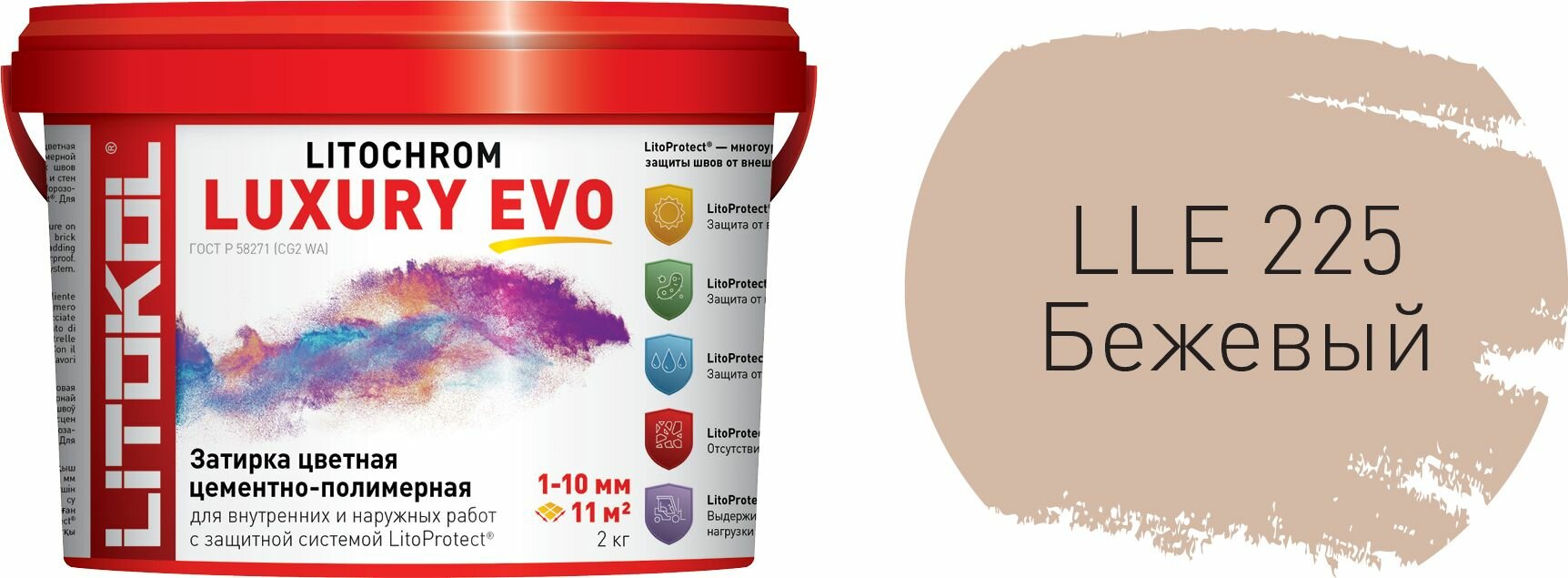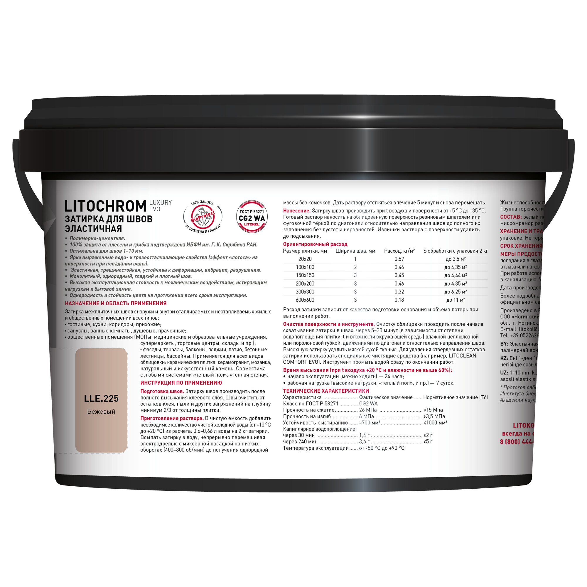 Купить Затирка цементная LITOKOL LITOCHROM LUXURY EVO LLE 225, цвет бежевый, 2 кг