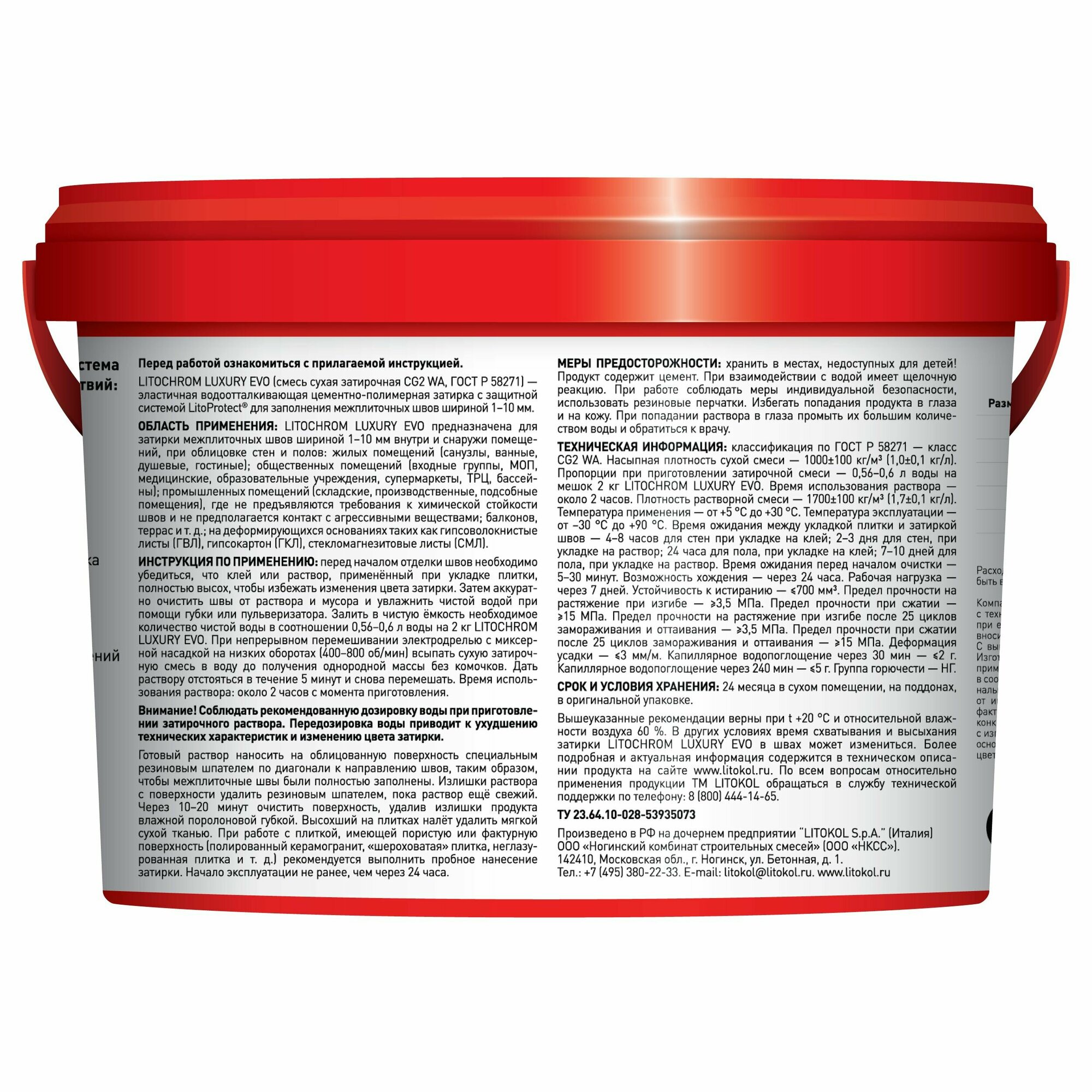Затирка цементно-полимерная Litokol Litochrom Luxury EVO дымчатая серая 2 кг