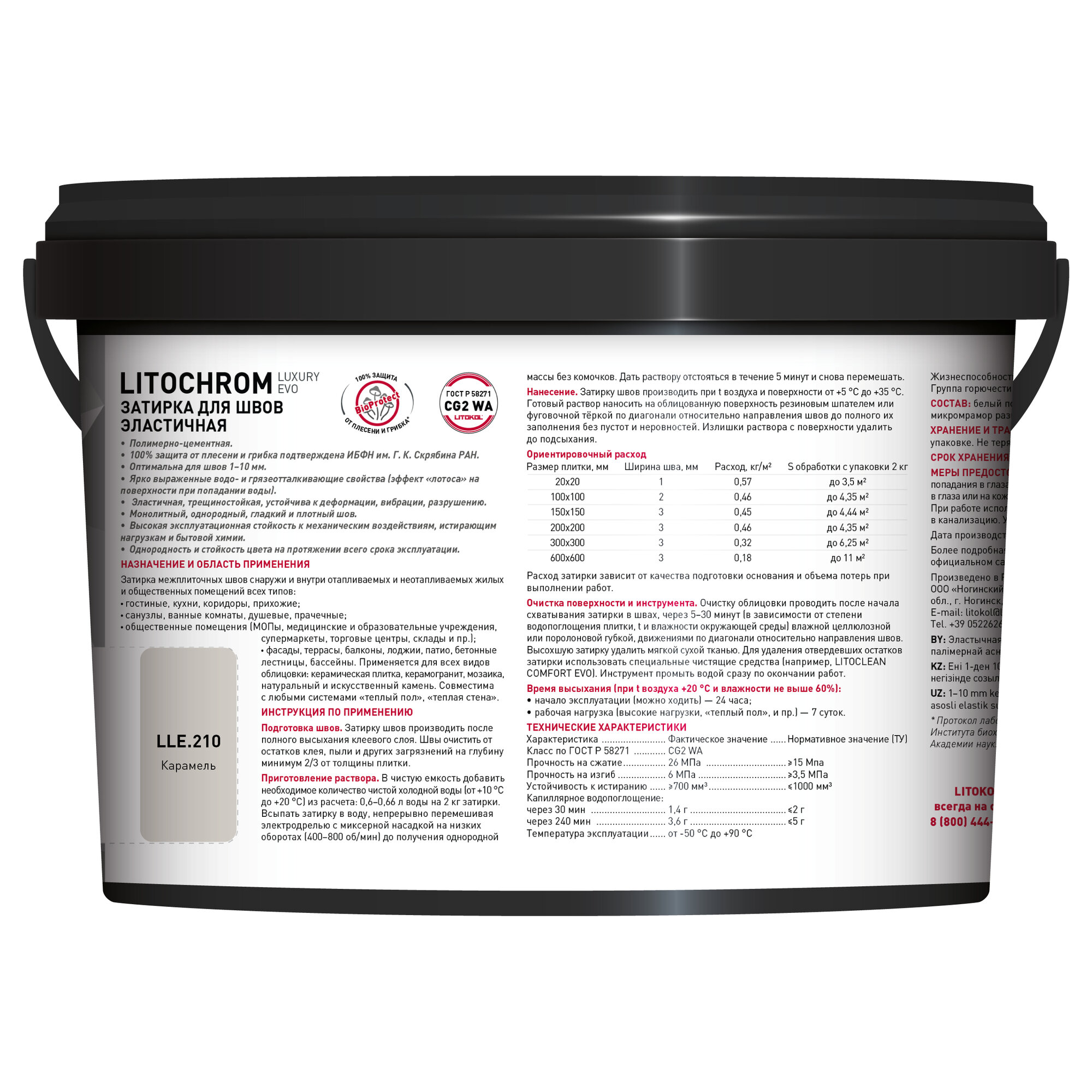Затирка для плитки, Цементно-полимерная LITOCHROM LUXURY EVO LLE.210, Карамель, 2 кг