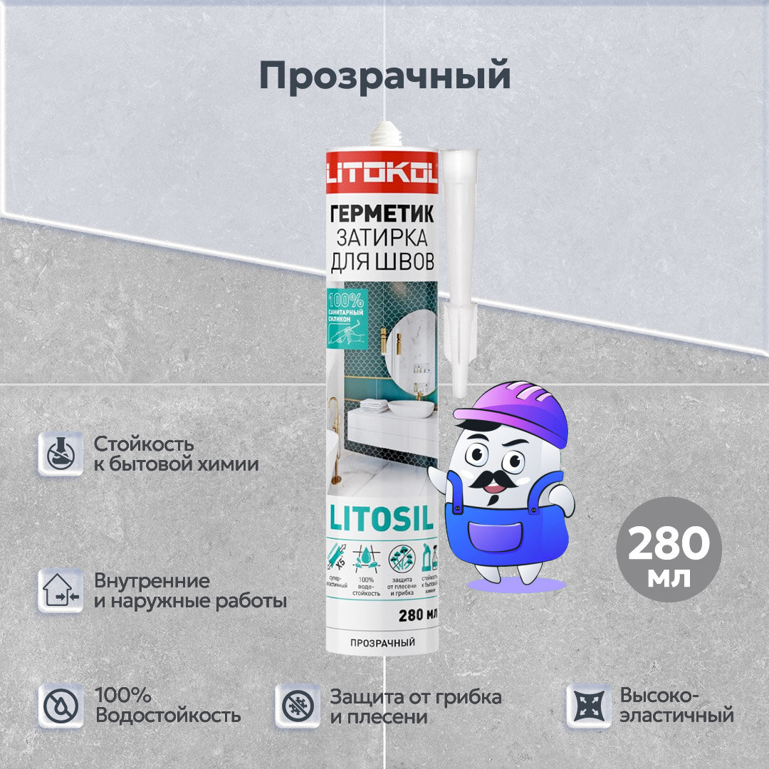 СохранитьГерметик-затирка санитарный силиконовый LITOKOL LITOSIL Прозрачный 280 мл интересное: