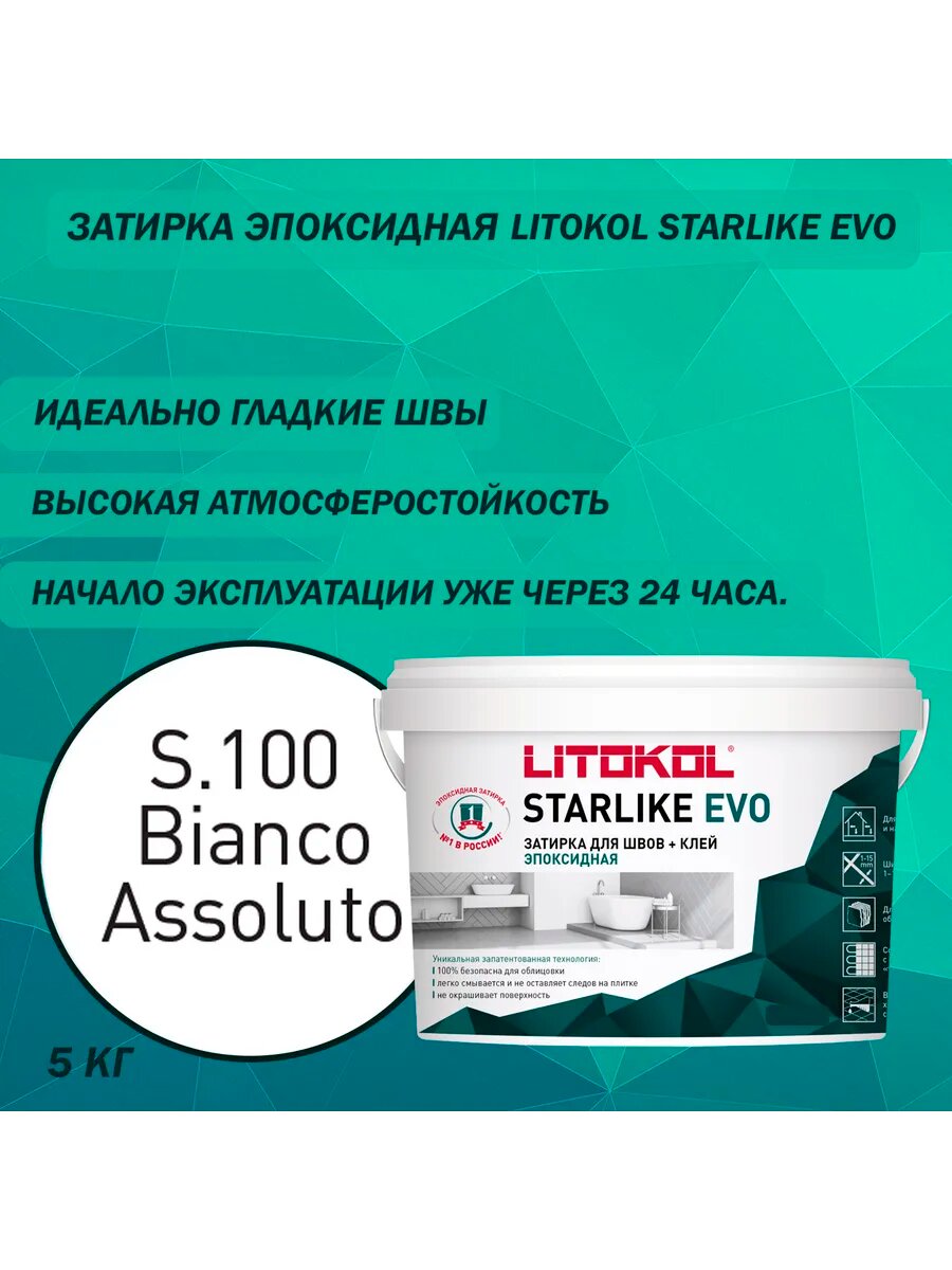 Ниже Вы можете прочитать отзывы на Эпоксидная затирочная смесь LITOKOL STARLIKE EVO S.100 Bianco Assoluto, 5 кг, ознакомится с подробными характеристиками, посмотреть интересные обзоры и фотографии на Эпоксидная затирочная смесь LITOKOL STARLIKE EVO S.100 Bianco Assoluto, 5 кг.
