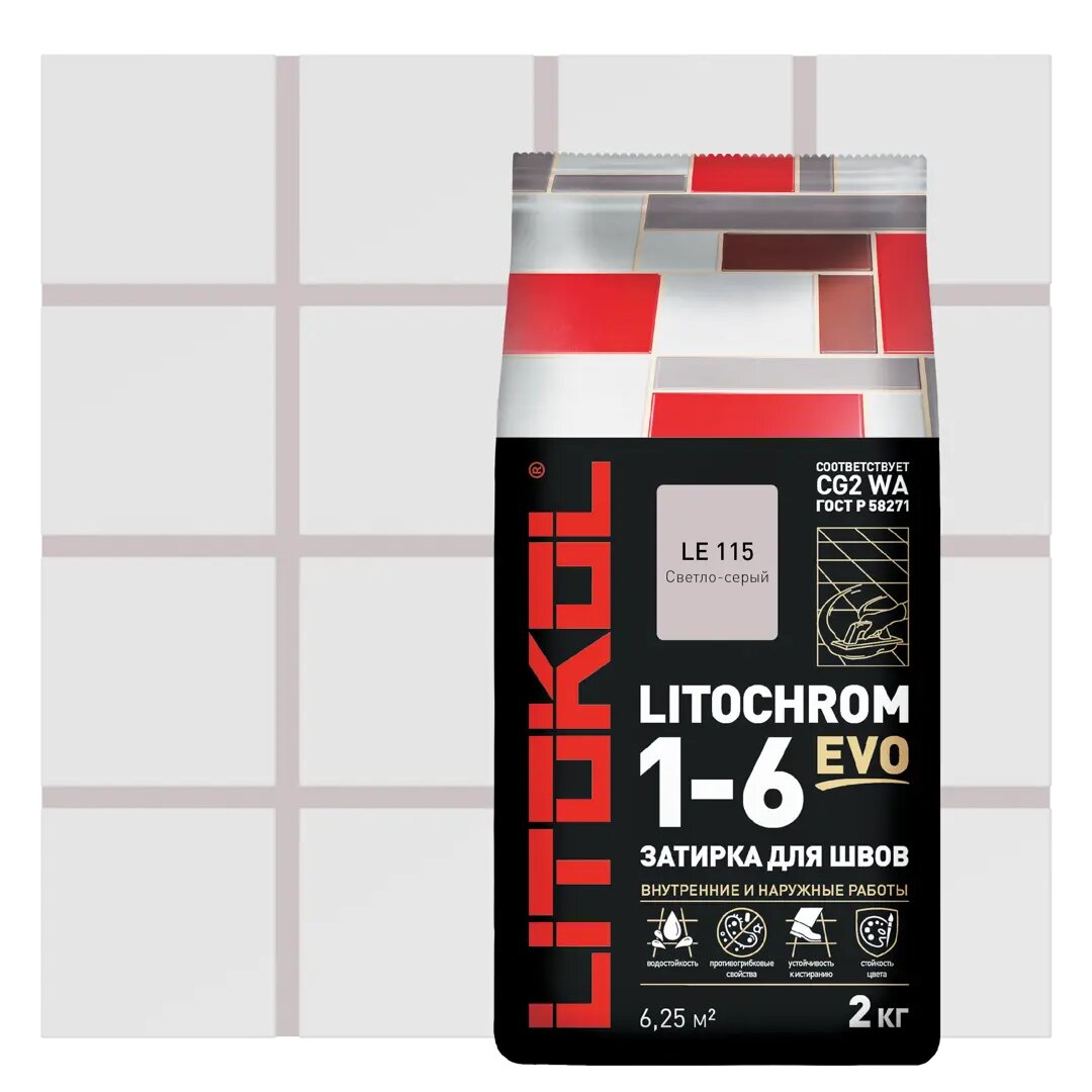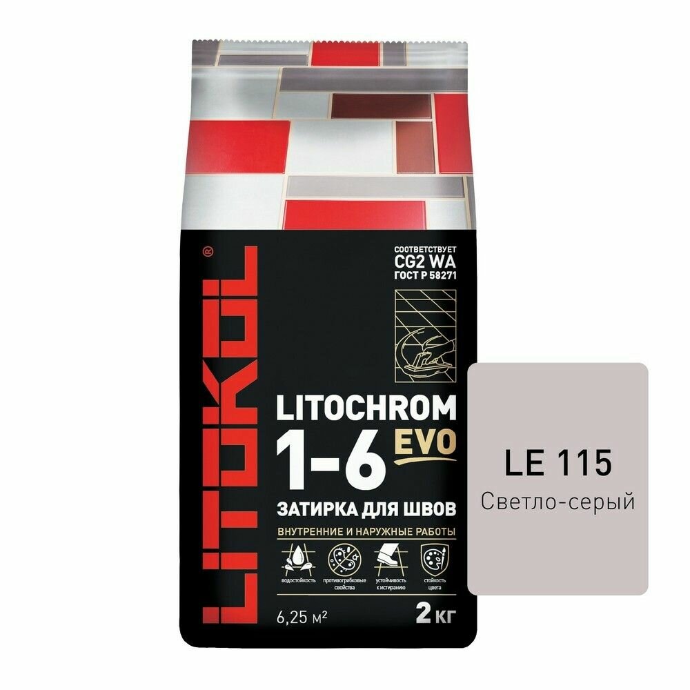 Купить Затирочная Смесь Litokol Litochrom 1-6 Evo 2кг LE.115 Светло-Серый, Цементная для Затирки Швов Плитки от 1 до 6 мм / Литокол Литохром Эво.