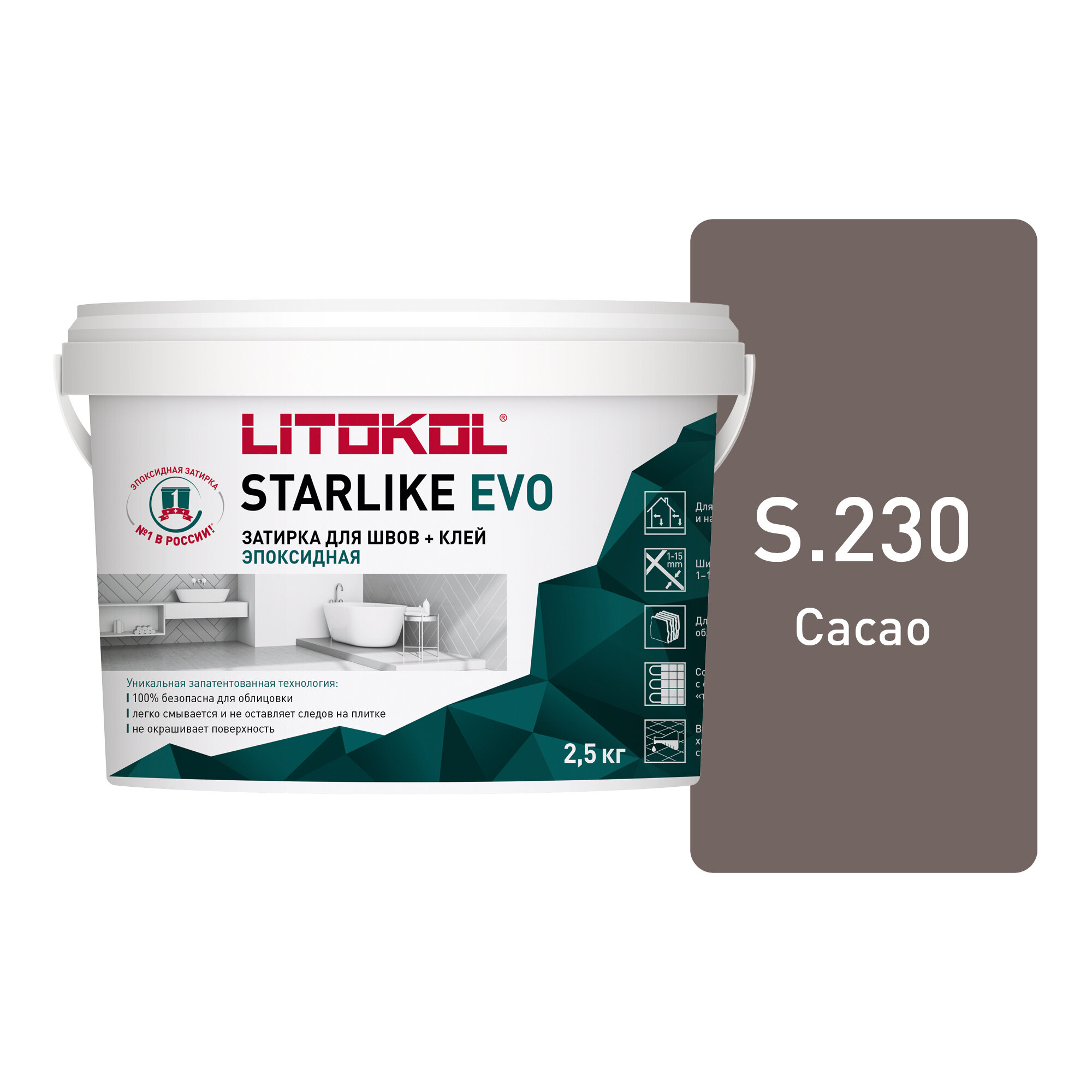 Эпоксидная затирочная смесь LITOKOL STARLIKE EVO S.230 Cacao, 2,5 кг