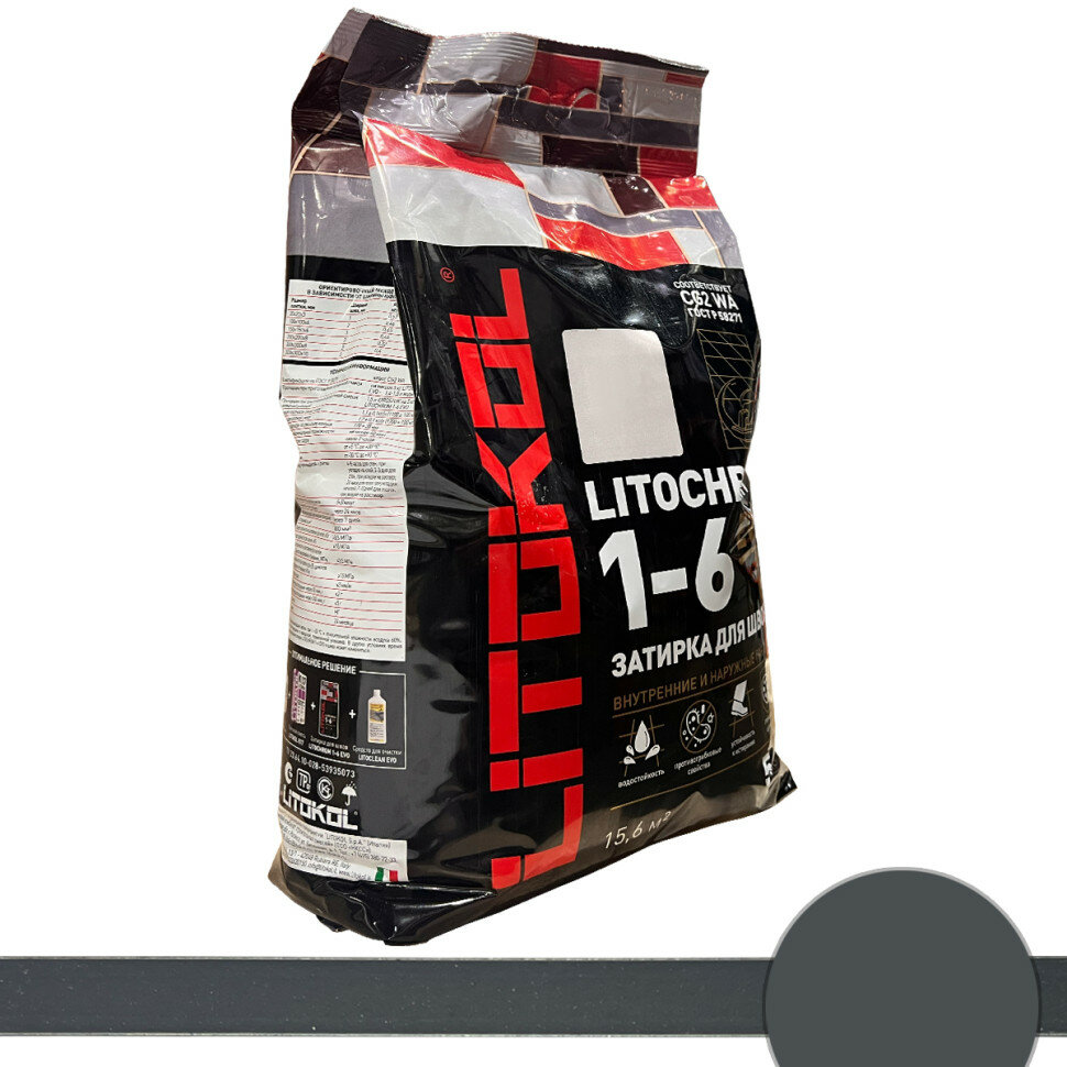 Купить Затирочная Смесь Litokol Litochrom 1-6 Evo 5кг LE.140 Мокрый Асфальт, Цементная для Затирки Швов Плитки от 1 до 6 мм / Литокол Литохром Эво.