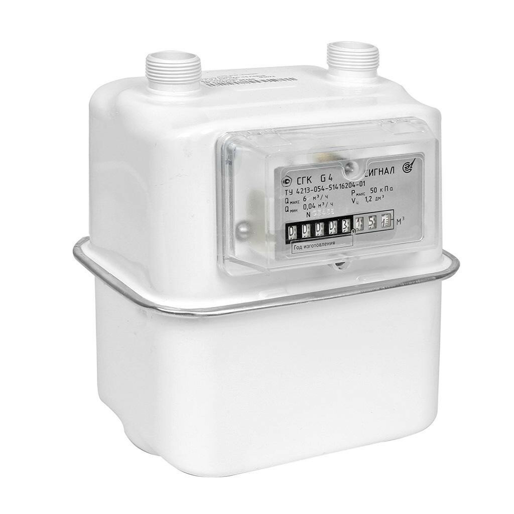 Счетчик газа бытовой Сигнал СГК G-4 (вход газа cправа-налево, резьба М30х2) 2023 года выпуска, + комплект прокладок