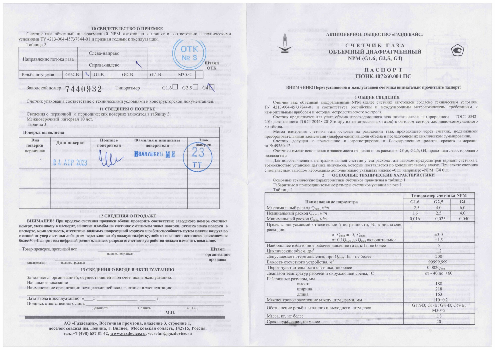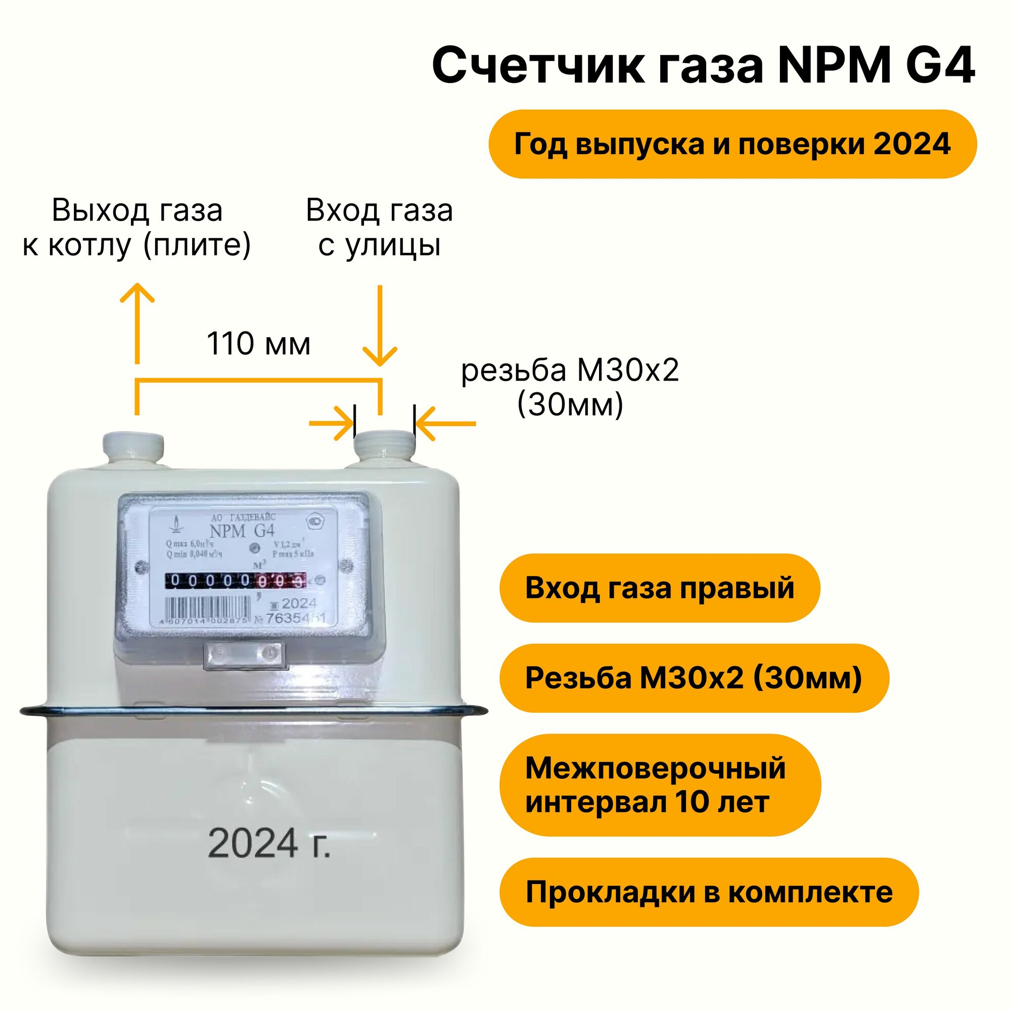 Счетчик газа бытовой Газдевайс NPM G4, 110мм, 1 1/4", справа-налево , 2023 г. в. Фильтр газа и прокладки в комплекте!!!