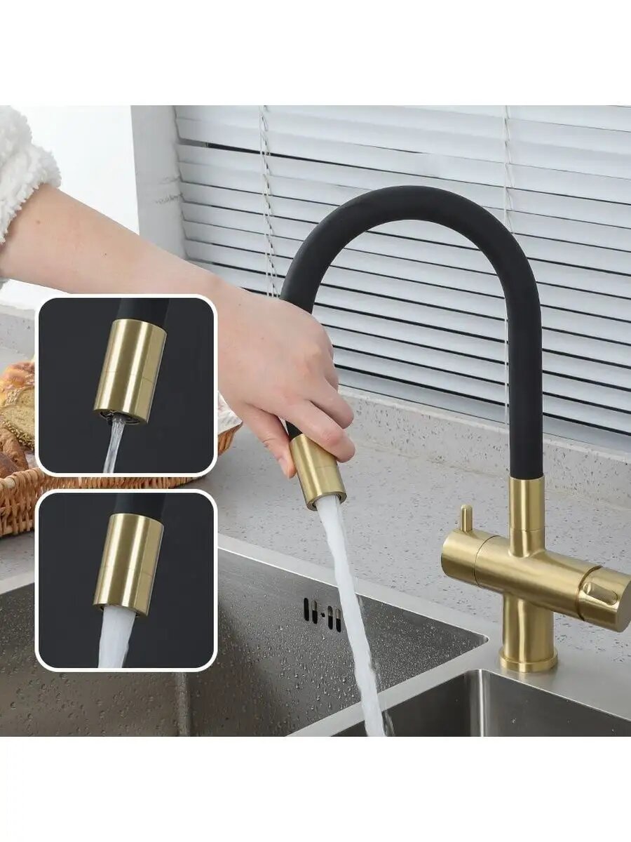 Смеситель для кухонной мойки Gappo G97-86 G4397-86 с подключением фильтра питьевой воды и гибким изливом, черный