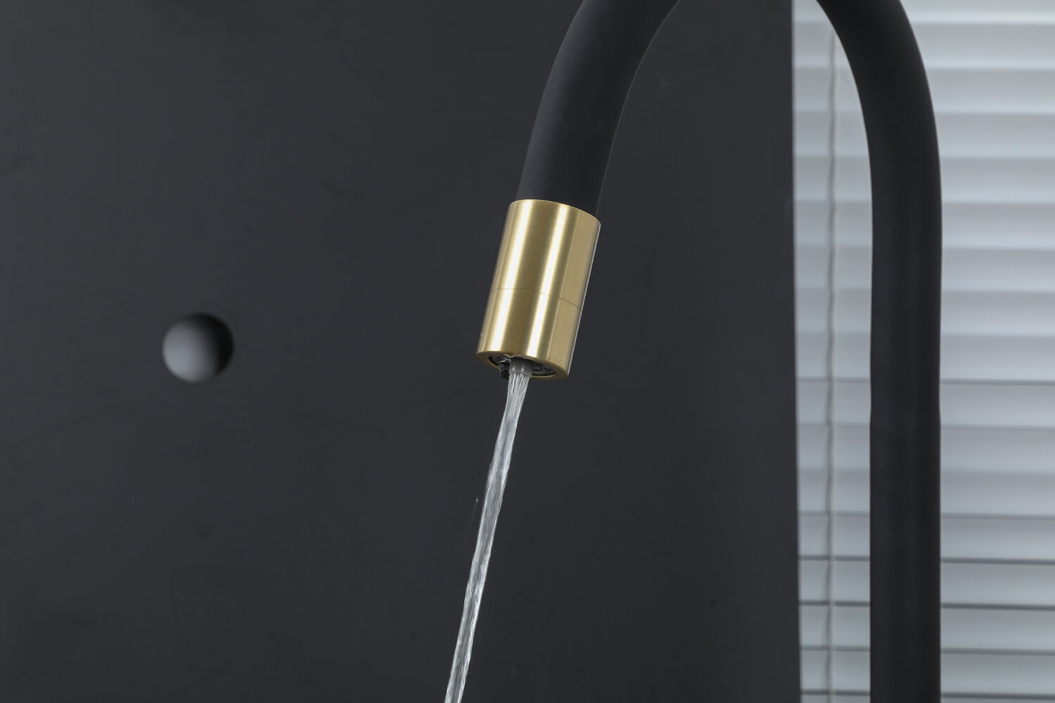 Смеситель для кухни с гибким изливом Gappo G4398-33, черный/золотой