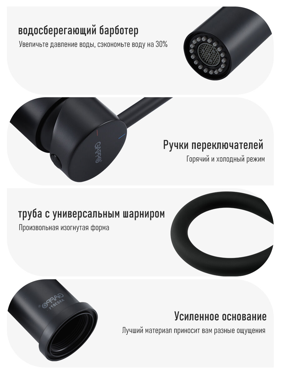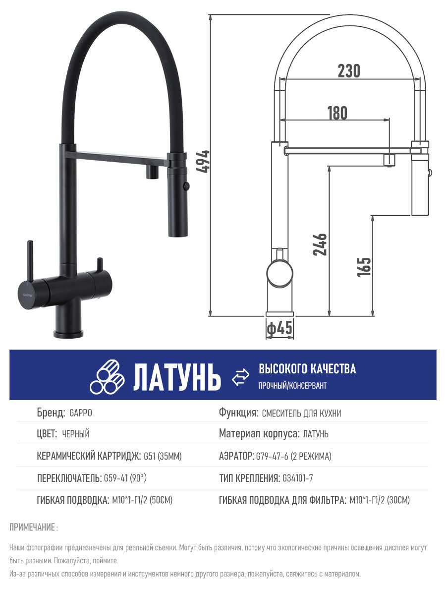СохранитьСмеситель для кухонной мойки Gappo G97-86 G4397-86 с подключением фильтра питьевой воды и гибким изливом, черный интересное: