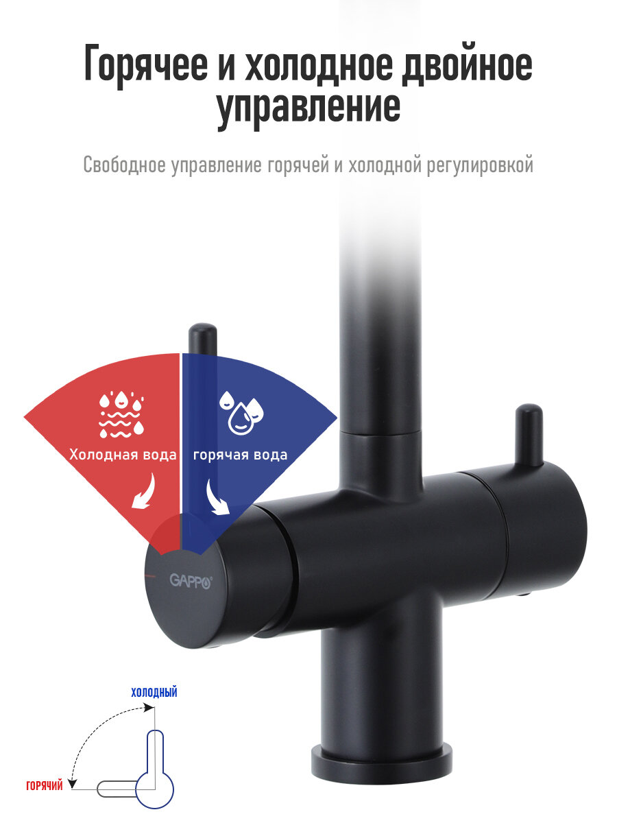 G4398-36 Cмеситель Кухня GAPPO d-35 c подключением фильтра питьевой воды (черный)