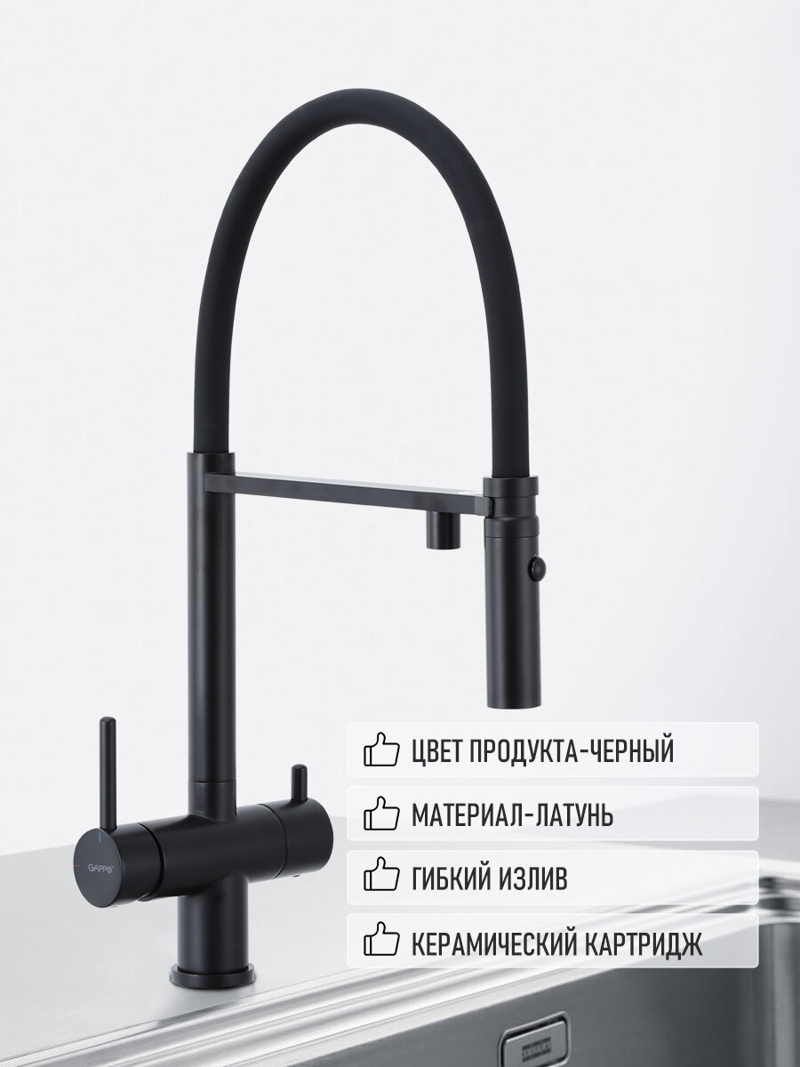 Купить Смеситель для кухонной мойки Gappo G97-86 G4397-86 с подключением фильтра питьевой воды и гибким изливом, черный