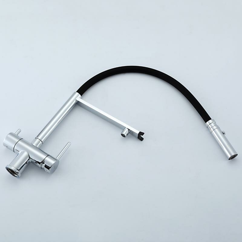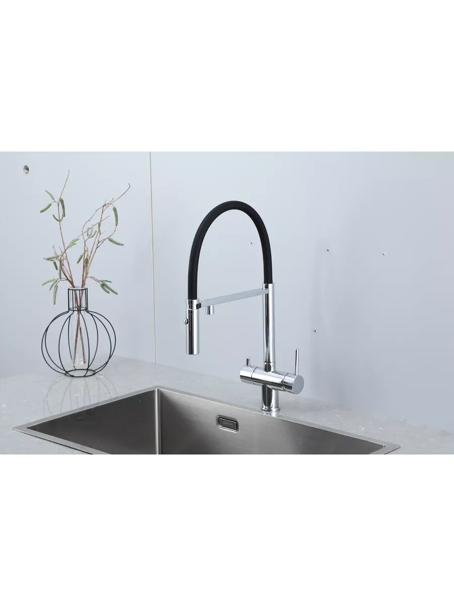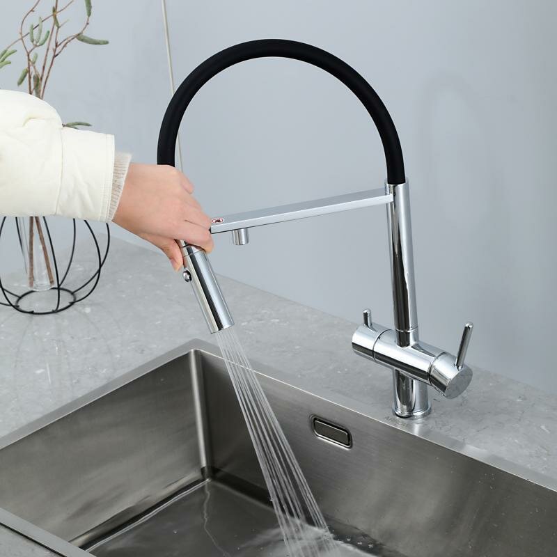 Смеситель для кухонной мойки Gappo G97-86 G4397-86 с подключением фильтра питьевой воды и гибким изливом, черный