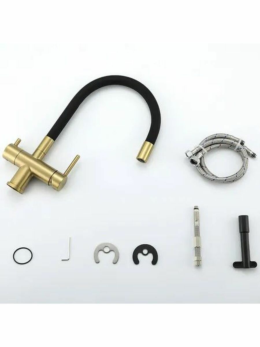 Смеситель для кухонной мойки Gappo G97-86 G4397-86 с подключением фильтра питьевой воды и гибким изливом, черный