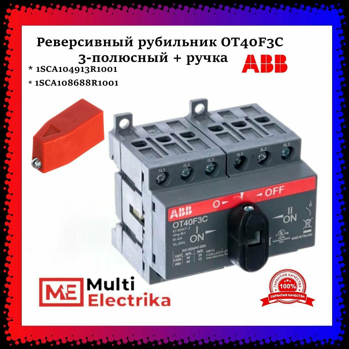 Реверсивный рубильник OT40F3C до 40А 3х-полюсный для установки на DIN- рейку или монтажную плату (с резерв. ручкой), ABB 1SCA104913R1001 (1 шт.)