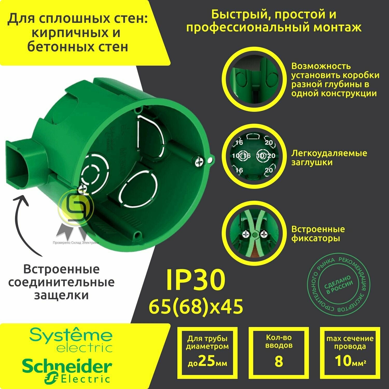174шт. - Коробка установочная 68х45мм для сплошных стен / Systeme Electric; арт. IMT35100; оригинал / - комплект 174шт