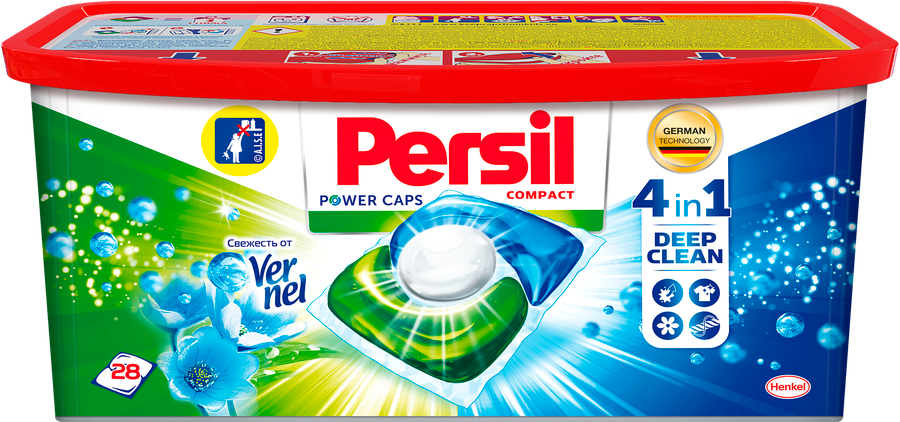 Капсулы для стирки Персил Power Caps Свежесть от Вернель 4 in 1, контейнер, 28 капсул