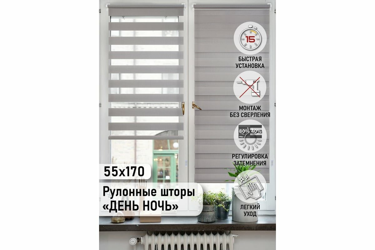 Купить Миниролло Эскар День-Ночь, полиэстер, серый, 55х170 см