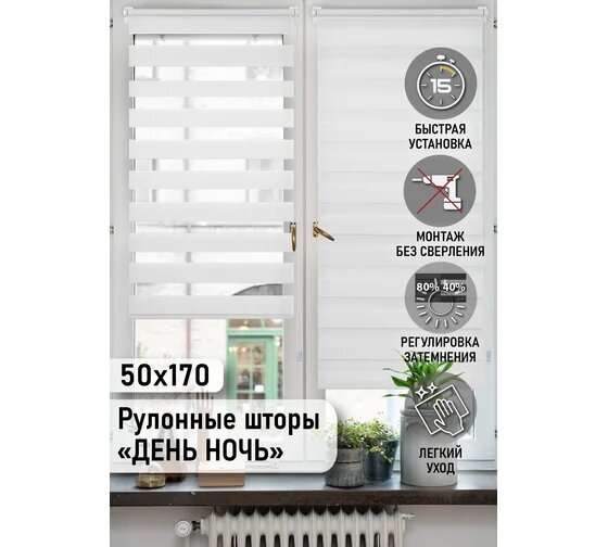 Купить Миниролло Эскар День-Ночь, полиэстер, белый, 50х170 см