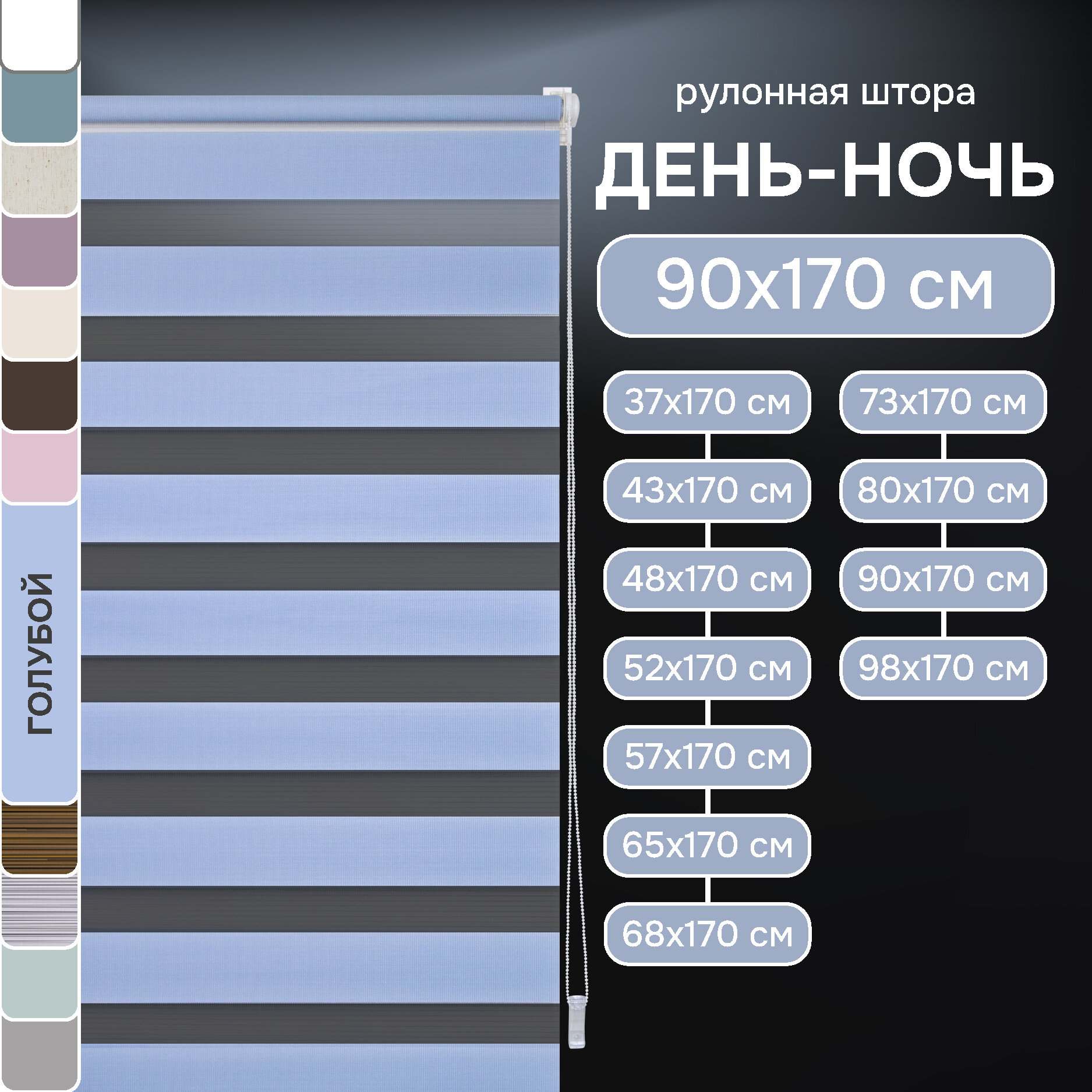 Миниролло Эскар День-Ночь, полиэстер, голубой, 68х170 см