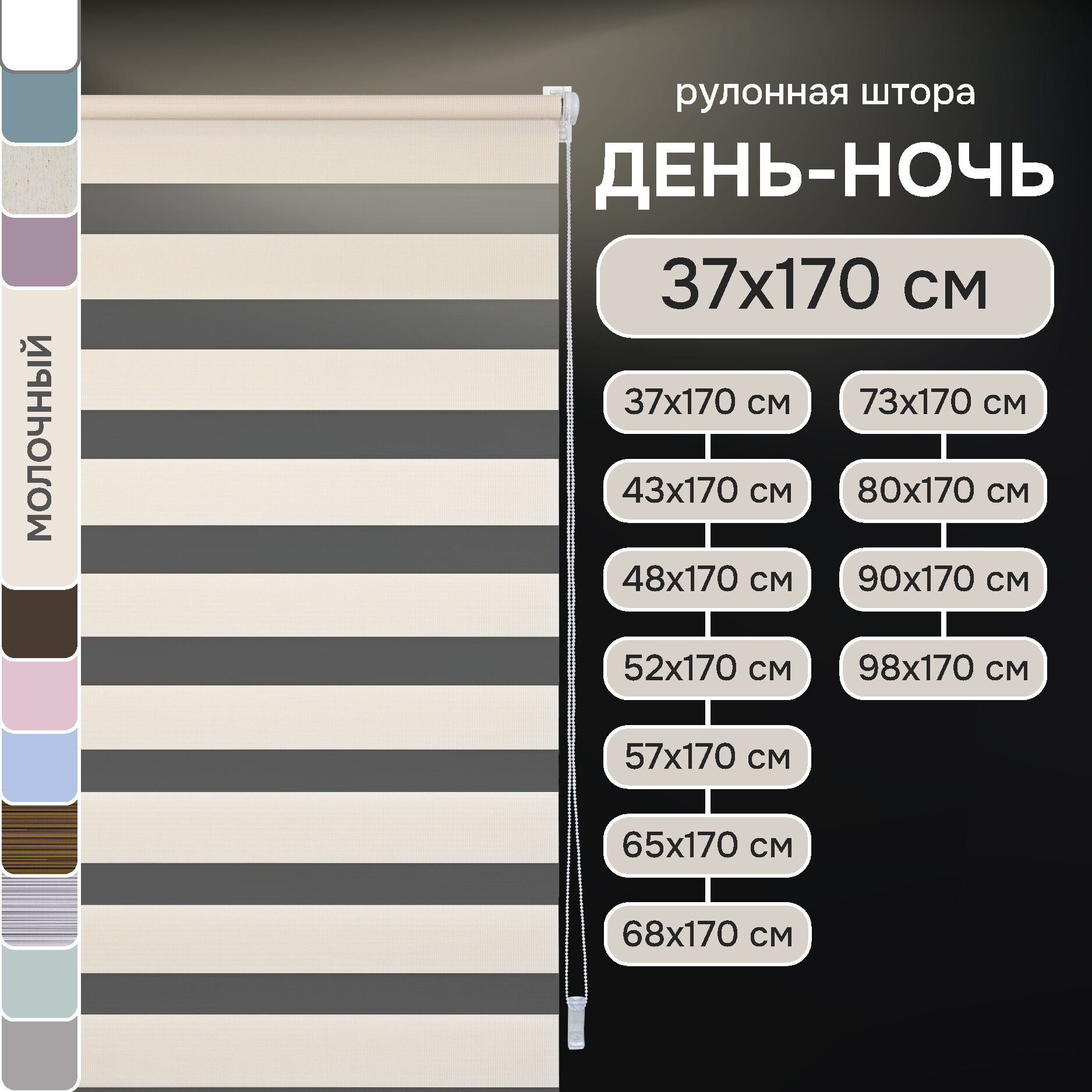 Купить Миниролло Эскар День-Ночь, полиэстер, молочный, 37х170 см