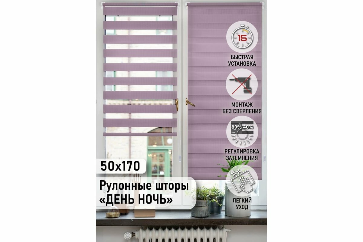 Купить Миниролло Эскар День-Ночь, полиэстер, фиолетовый, 50х170 см