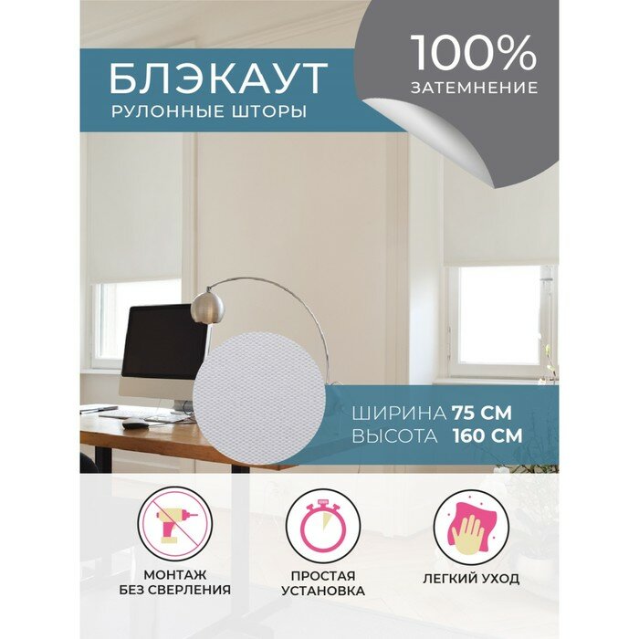 Купить Рулонная штора Decofest блэкаут "Белый" 075x160