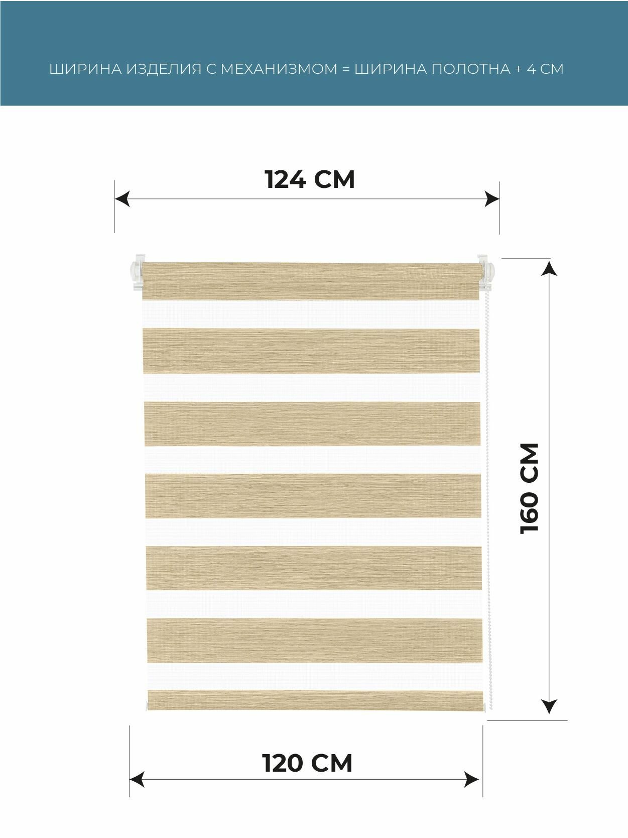 Рулонные шторы день ночь 120 см х 160 см Эко-бежевый Бейс DECOFEST