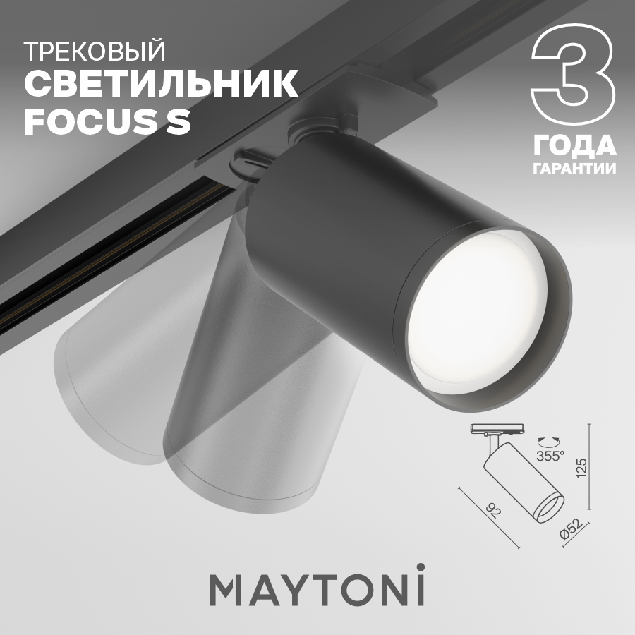 Трековый светильник-спот MAYTONI Focus S TR020-1-GU10-B, кол-во ламп: 1 шт., цвет арматуры: черный, цвет плафона: черный