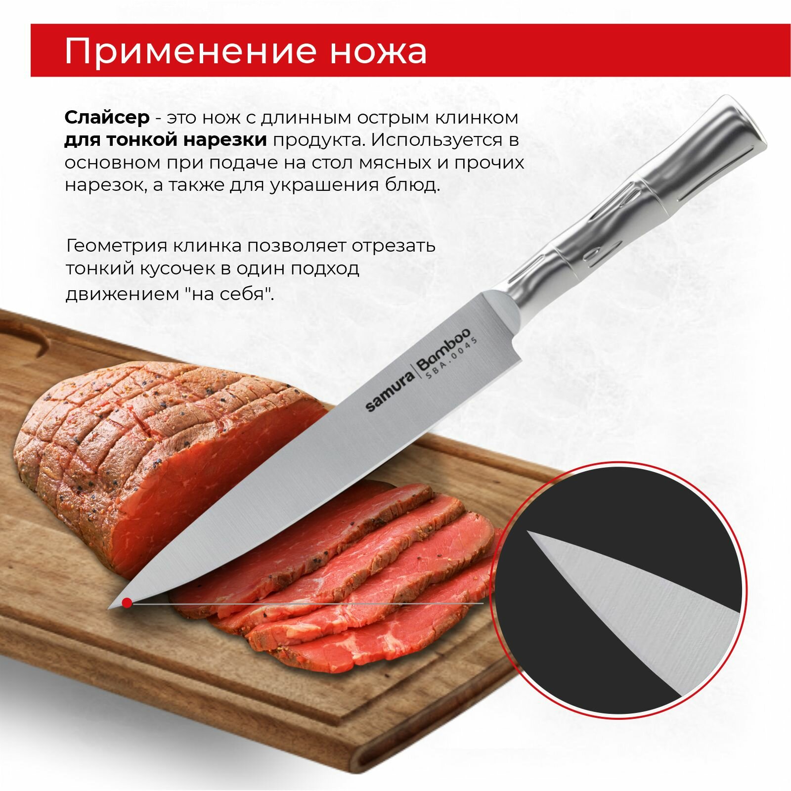 Купить Набор кухонных ножей с подставкой Samura Bamboo / овощной нож / универсальный нож / слайсер / шеф нож / SBA-05
