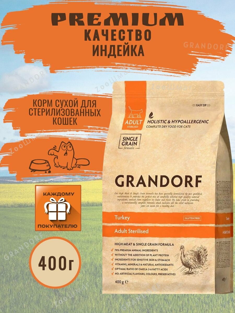 Купить Grandorf сухой корм для стерилизованных кошек с индейкой - 400 г
