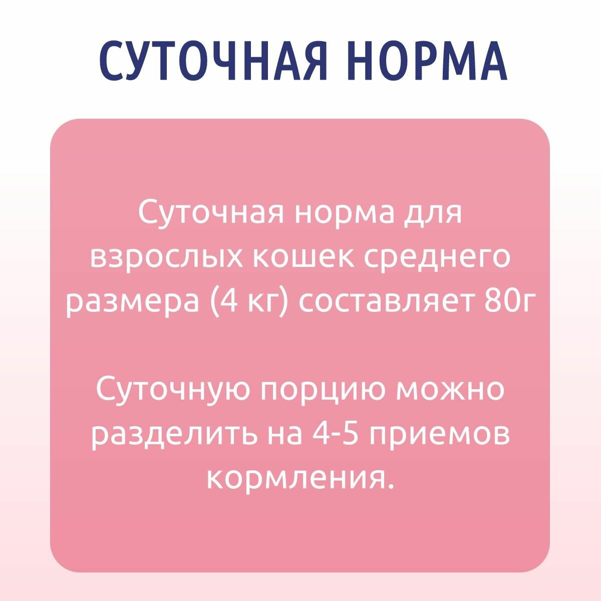 | Дозировка | - вес кошки 3 кг - 164 г - вес кошки 4 кг - 200 г - вес кошки 5 кг - 230 г - вес кошки 6 кг - 261 г |
