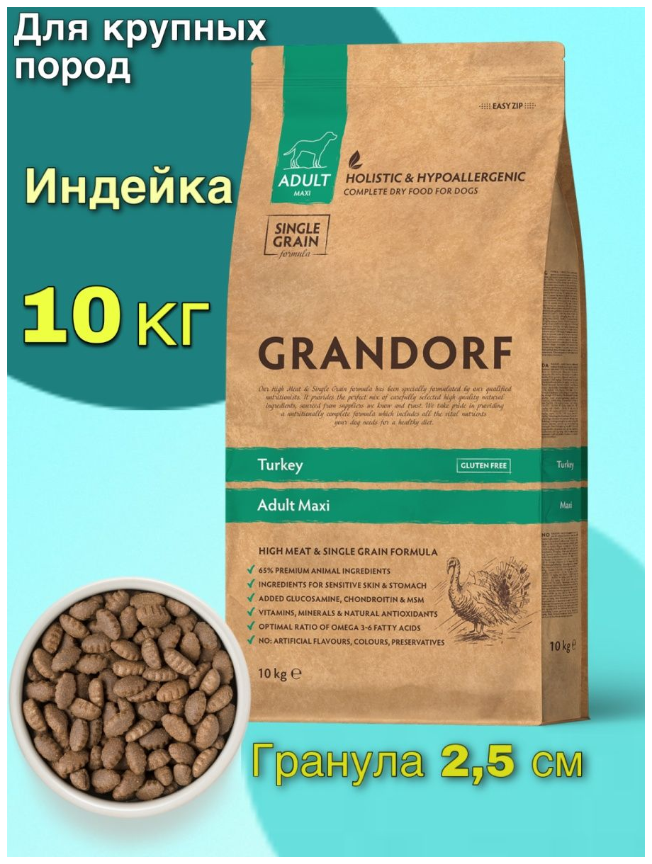 GRANDORF SINGLE GRAIN DOG ADULT MAXI TURKEY низкозерновой для взрослых собак крупных пород с индейкой (10 кг)