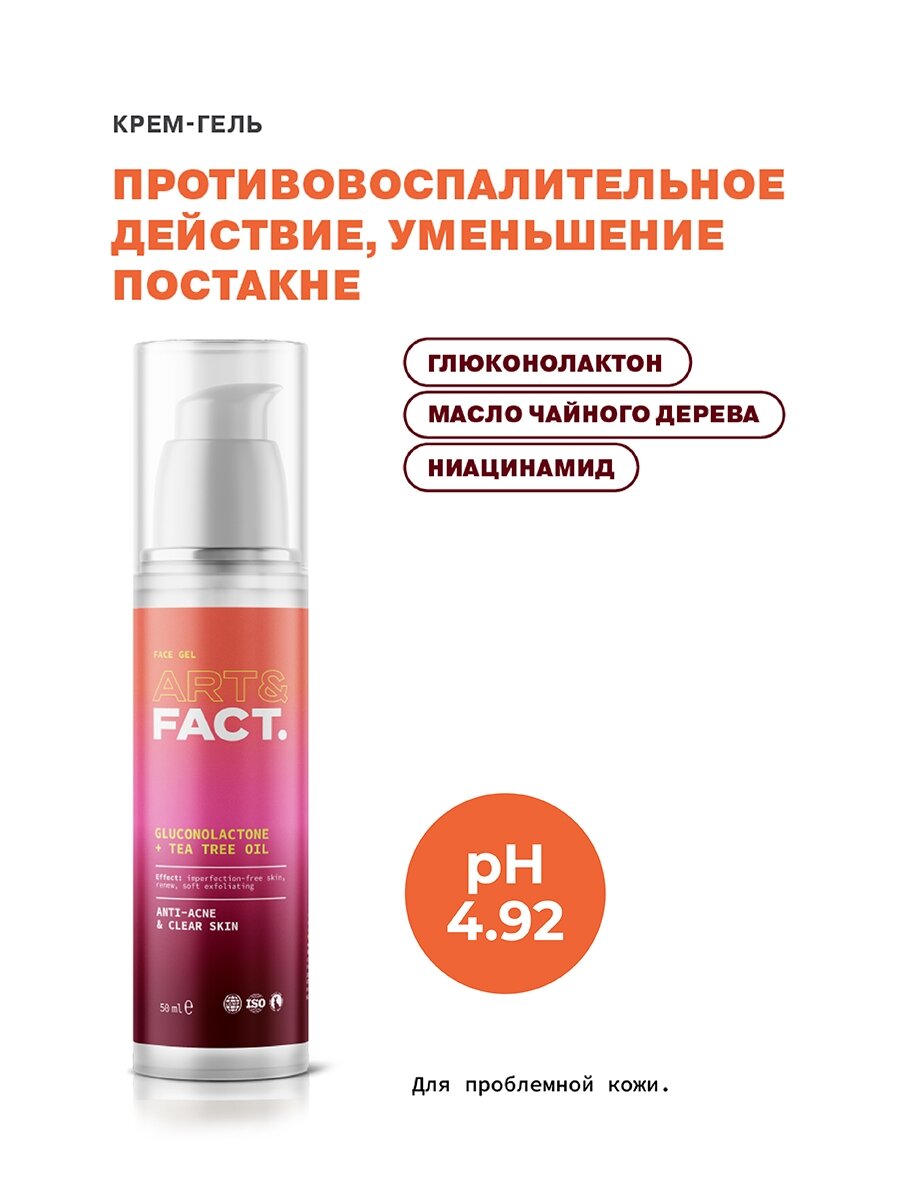 Купить ART&FACT. /Анти-акне крем-гель для проблемной кожи с глюконолактоном PHA-кислотой и маслом чайного дерева, 50 мл