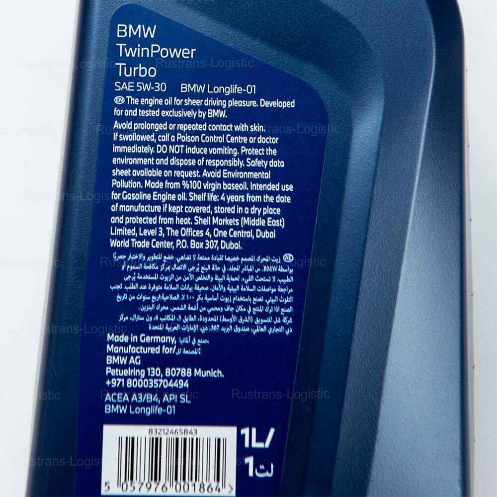 BMW Масло Моторное Bmw Quality Longlife-01 5w-30 Синтетическое 1 Л 83 21 2 465 843 Bmw Twinpower Turbo Oil Longlife-01 Sae 5w-30