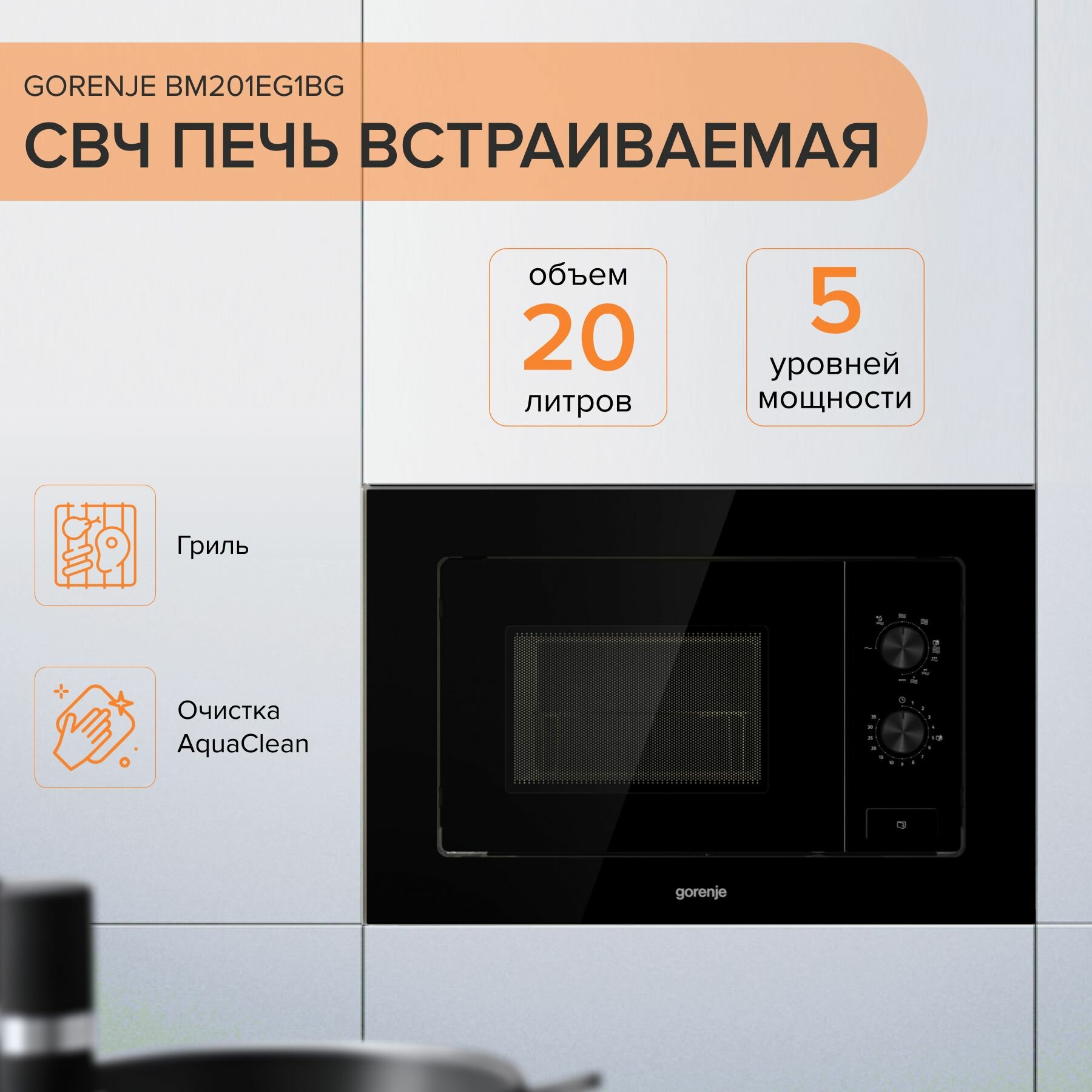 Встраиваемая микроволновка Gorenje BM201 с грилем, конвекцией и электронным управлением