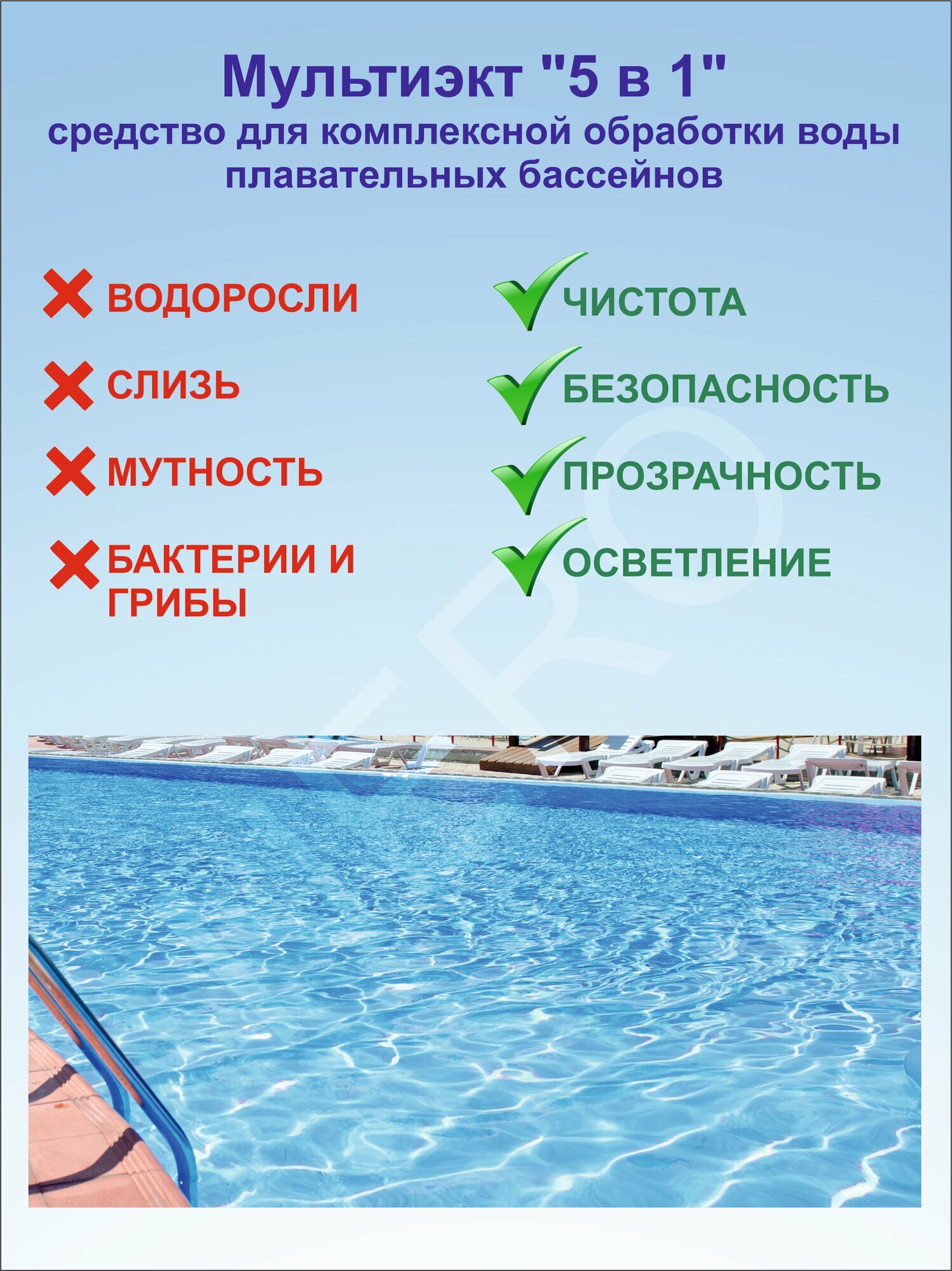 Комплексное средство для обеззараживания и очистки воды Мультиэкт 5 в 1, 1кг