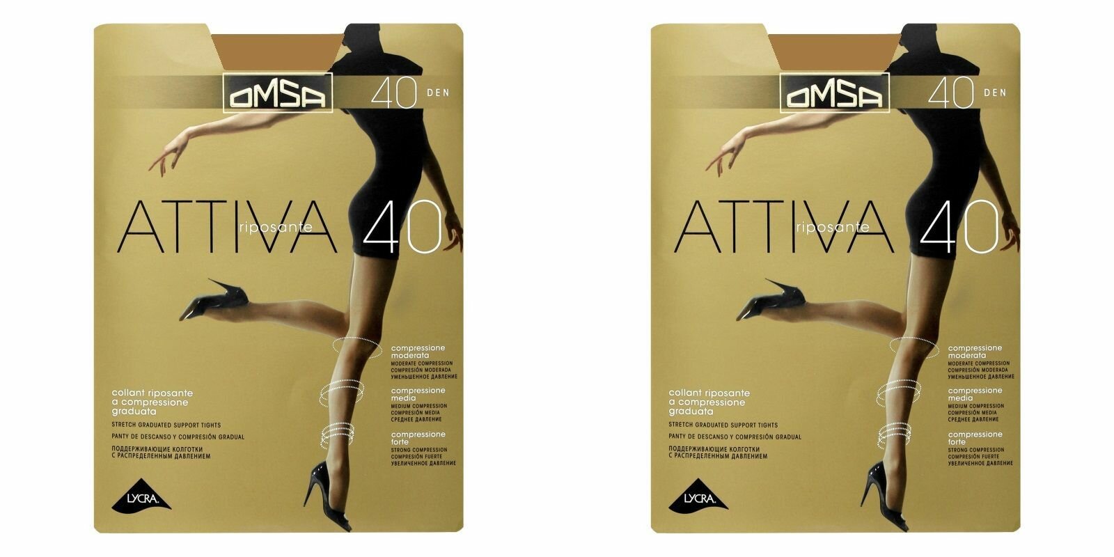 Omsa Колготки женские Attiva, цвет Caramello, 40 den, размер 2, поддерживающие шортики, 2 шт