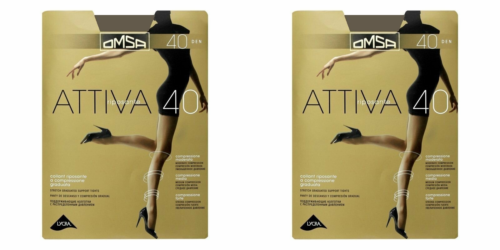 Купить Omsa Колготки женские Attiva, цвет Fumo, 40 den, размер 5, поддерживающие шортики, 2 шт