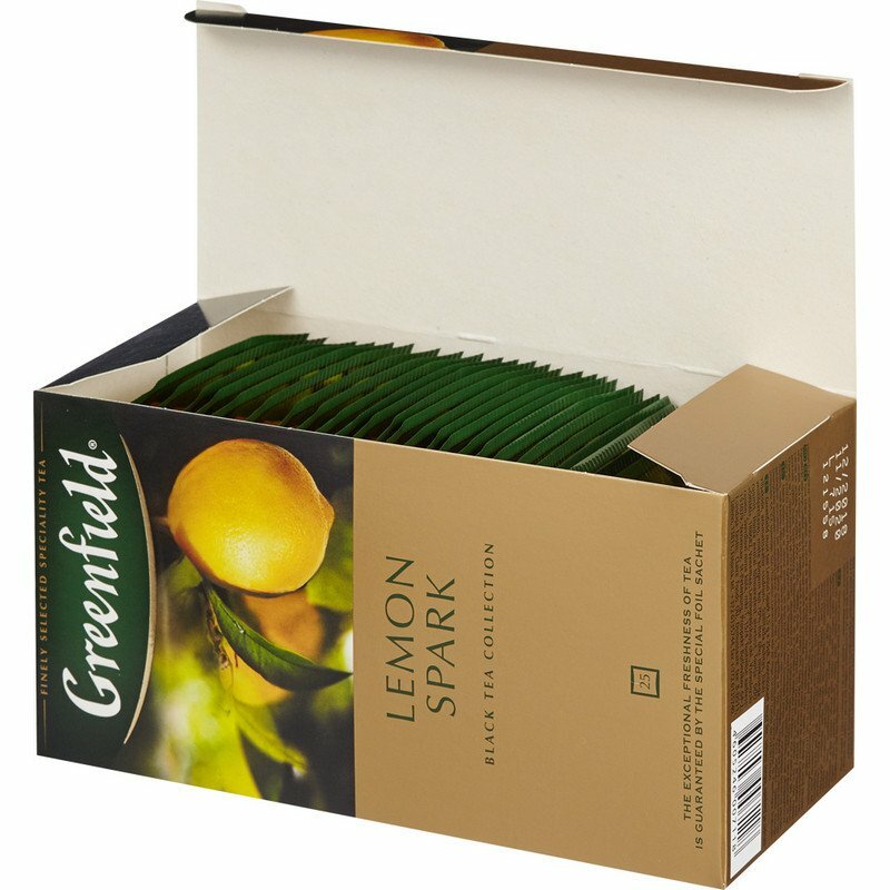 Купить Чай черный Greenfield Lemon Spark, с ароматом лимона, 2 упаковки по 25 пакетиков