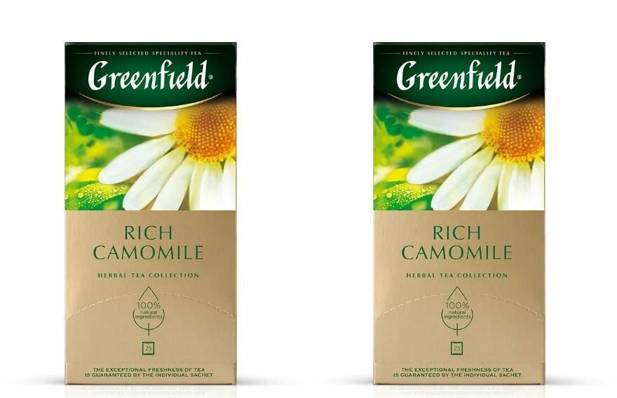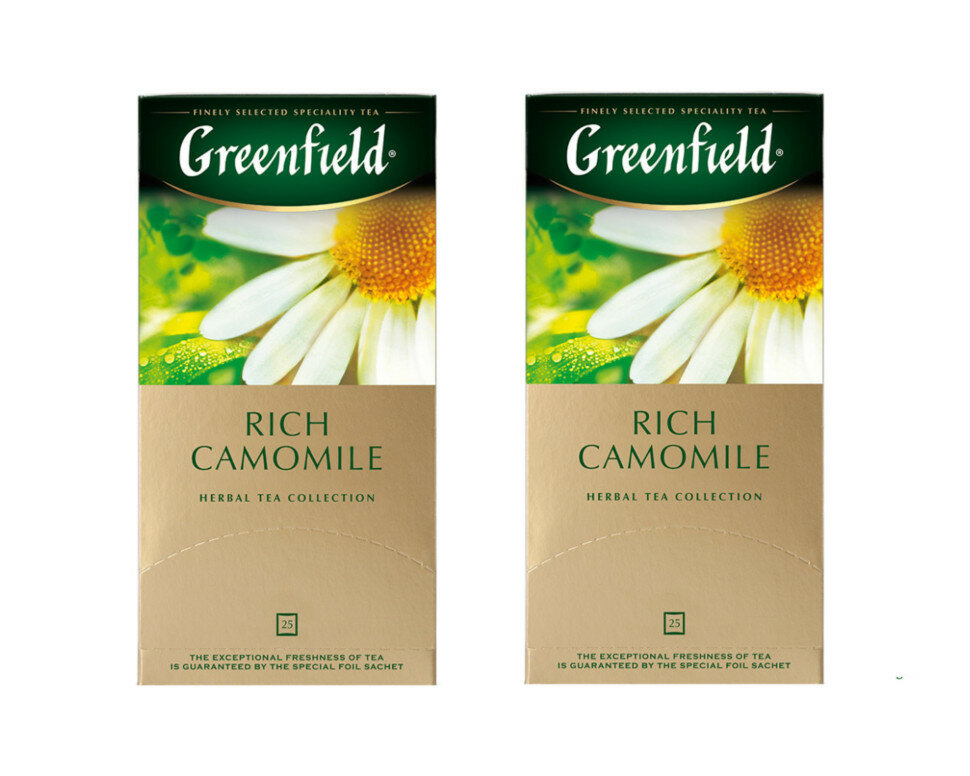 Купить Чайный напиток Greenfield Rich Camomile, со вкусом и ароматом яблока с корицей, 2 упаковки по 25 пакетиков