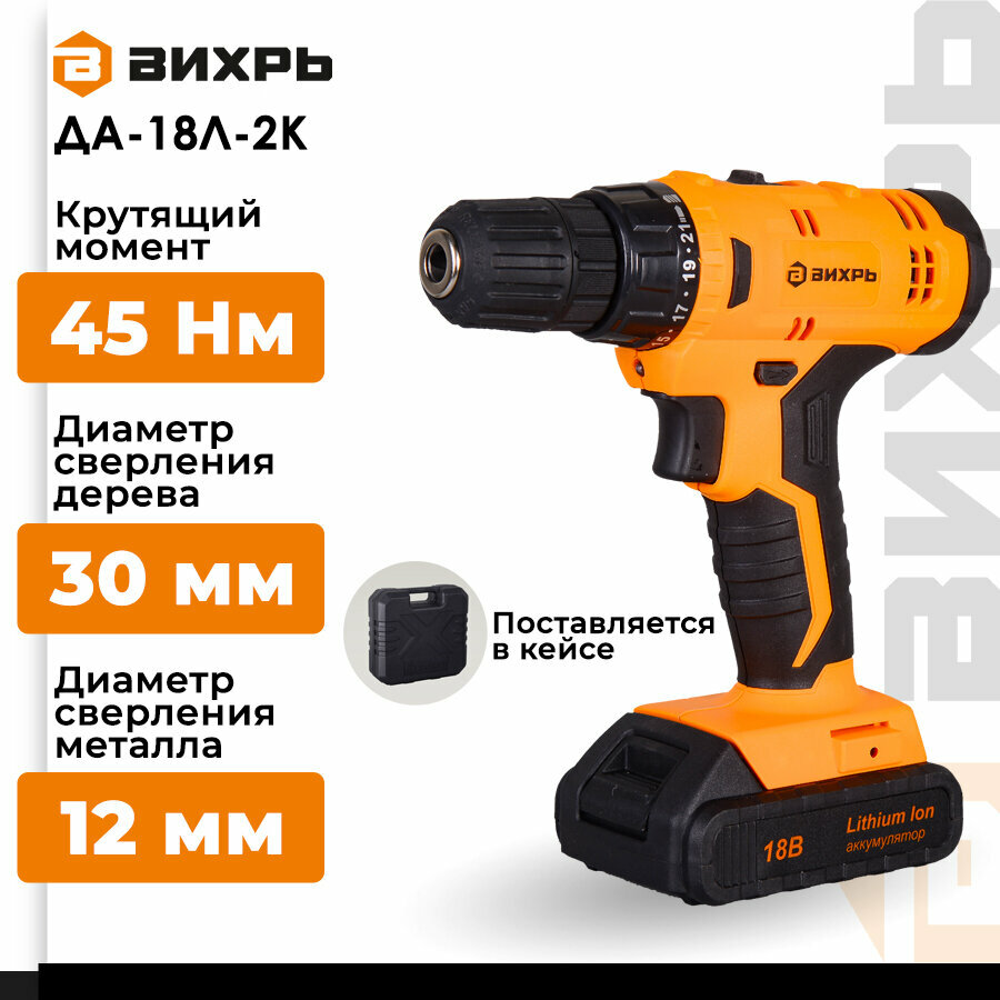 Аккумуляторная дрель-шуруповерт вихрь ДА-18Л-2К 2021