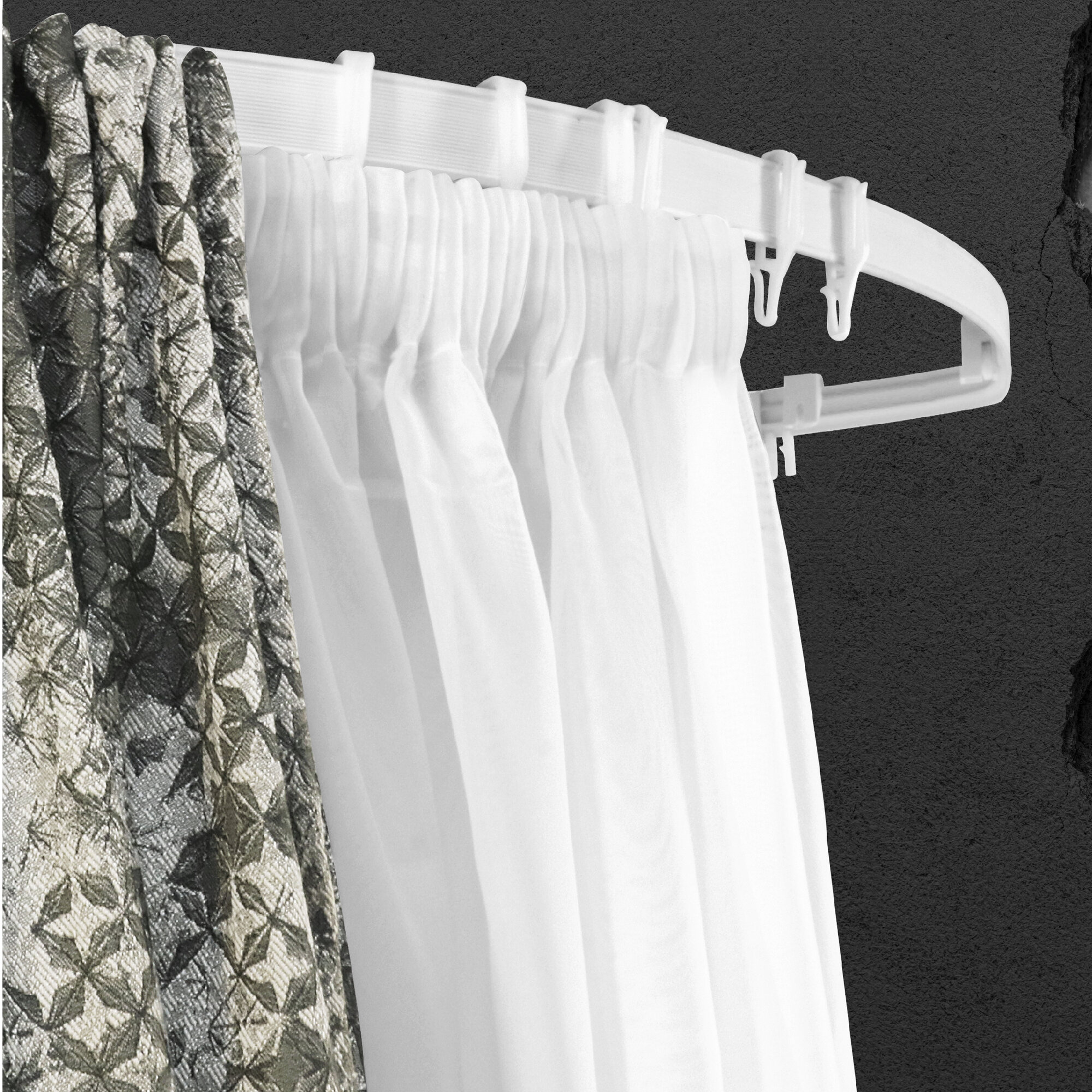 Очень быстро монтируется. Надёжная конструкция. Можно разделить , если нужно разрезав напополам (есть два комплекта боковых заглушек). Удобные крючки с несколькими вариантами размещения штор