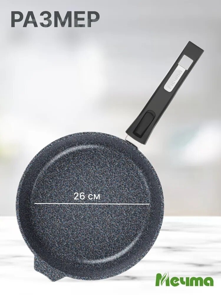 Сковорода Мечта Сковорода Мечта 26см Гранит с антипригарным покрытием со съемной ручкой и крышкой с026803, диаметр 26 см