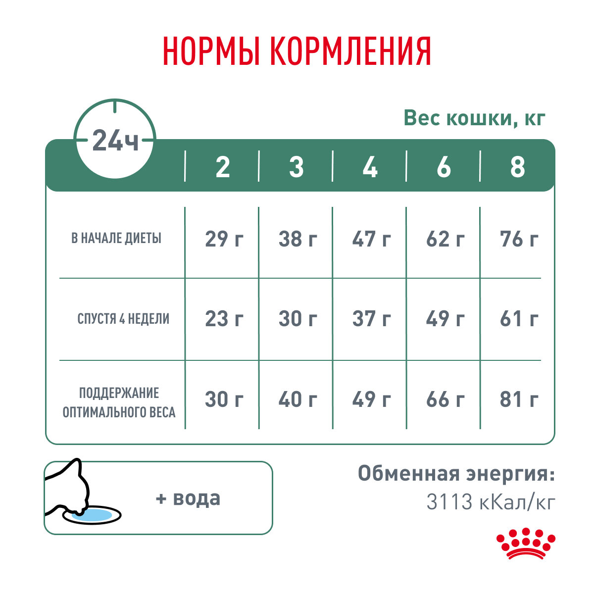 | Ветеринарная диета | при избыточном весе / при сахарном диабете |