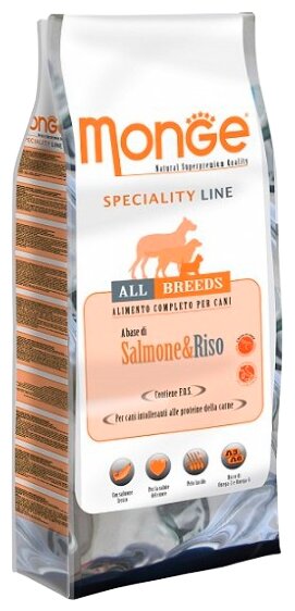 Сухой корм для собак Monge Speciality line, лосось, с рисом 12 кг
