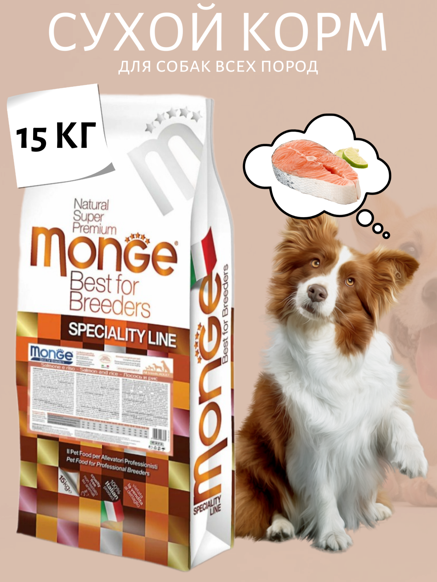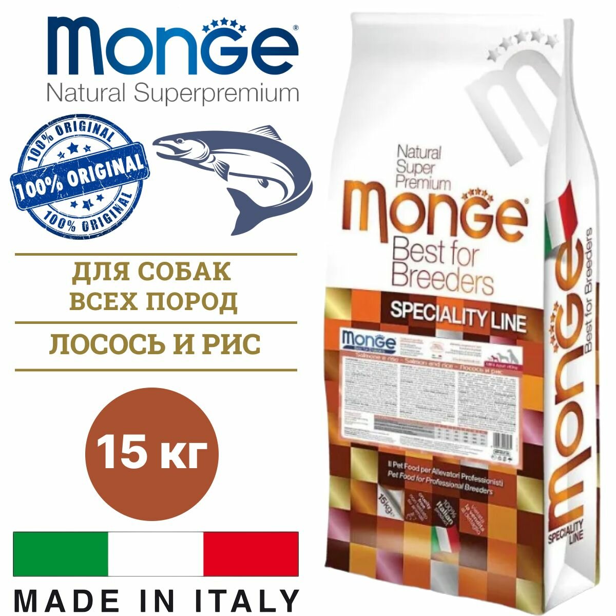 Сухой корм для собак Monge Speciality line, лосось, с рисом 1 уп. х 1 шт. х 15 кг